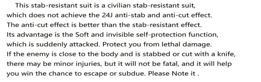 If you order our anti cut clothing, pls note below information,