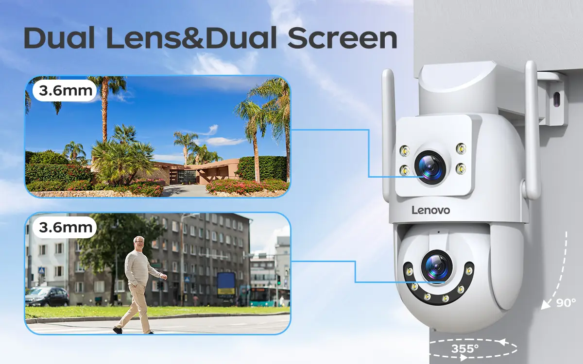 Lenovo 4K 6MP WiFi Surveillance Camera Outdoor Security Dual Lens Dual Screen AI Tracking PTZ IP Camera CCTV Video SurveillanceUSD 16.81-21.27/piece