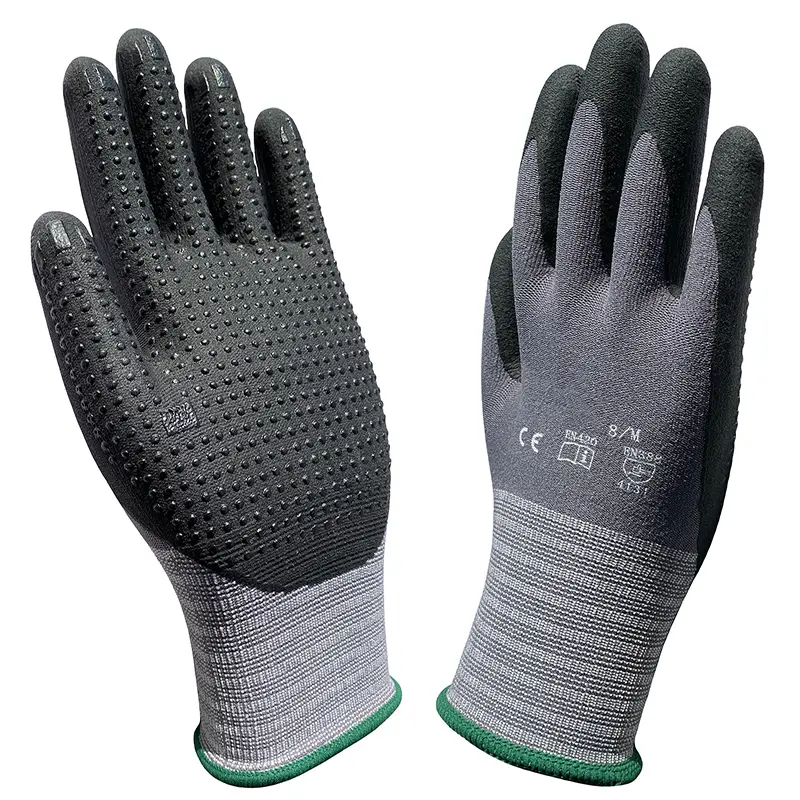 Gardening Work Gloves Nylon Spandex Super Grip Resistant Maxi High Flex Nitrile Micro Foam Dots Safety Mittens