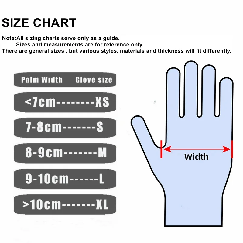 XS Glove Palm Width: 7~7.5cm / 2.7~2.9inch, Length: Approx. 24cm / 9.4in
