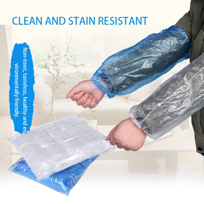100PCS/Lot Disposable Arm Sleeves Covers, Plastic Clear Arm Sleeves Protector Waterproof Oilproof for Painting, Repair, Cleaning