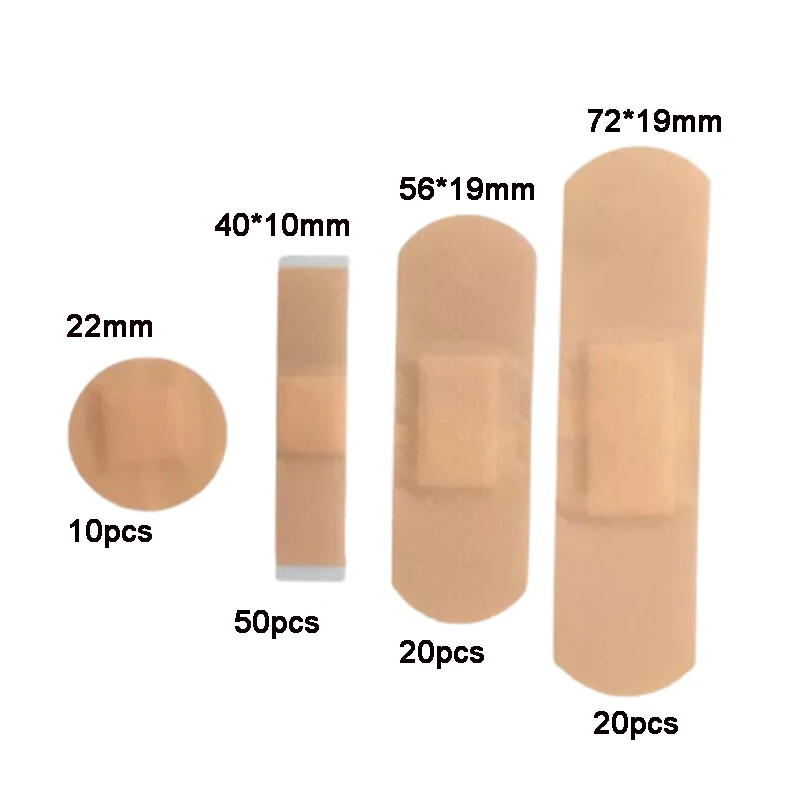 ■ Material: PE Non-woven Tape and Absorbent Pad ■ Size: 72x19mm-20pcs, 56x19mm-20pcs, 40x10mm-50pcs, spot 22mm-10pcs(4 Size In 1 Package) ■ Color:Skin ■ Package:100Pcs/Lot