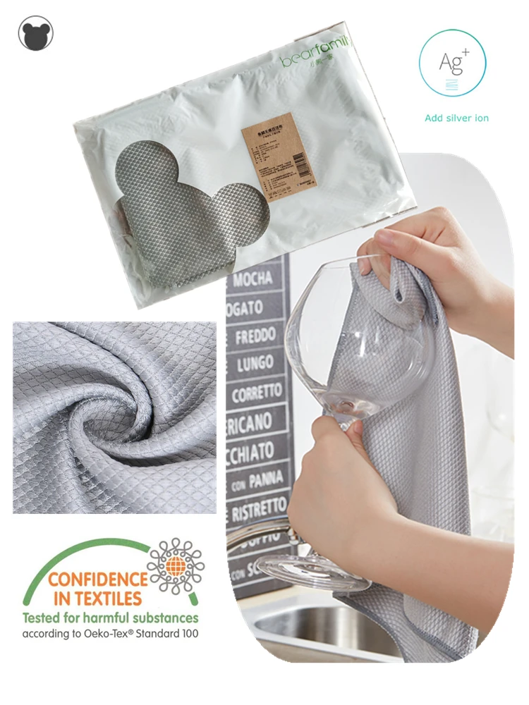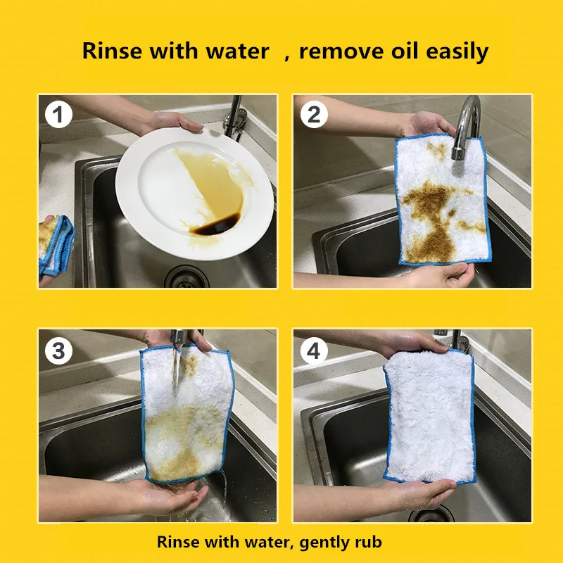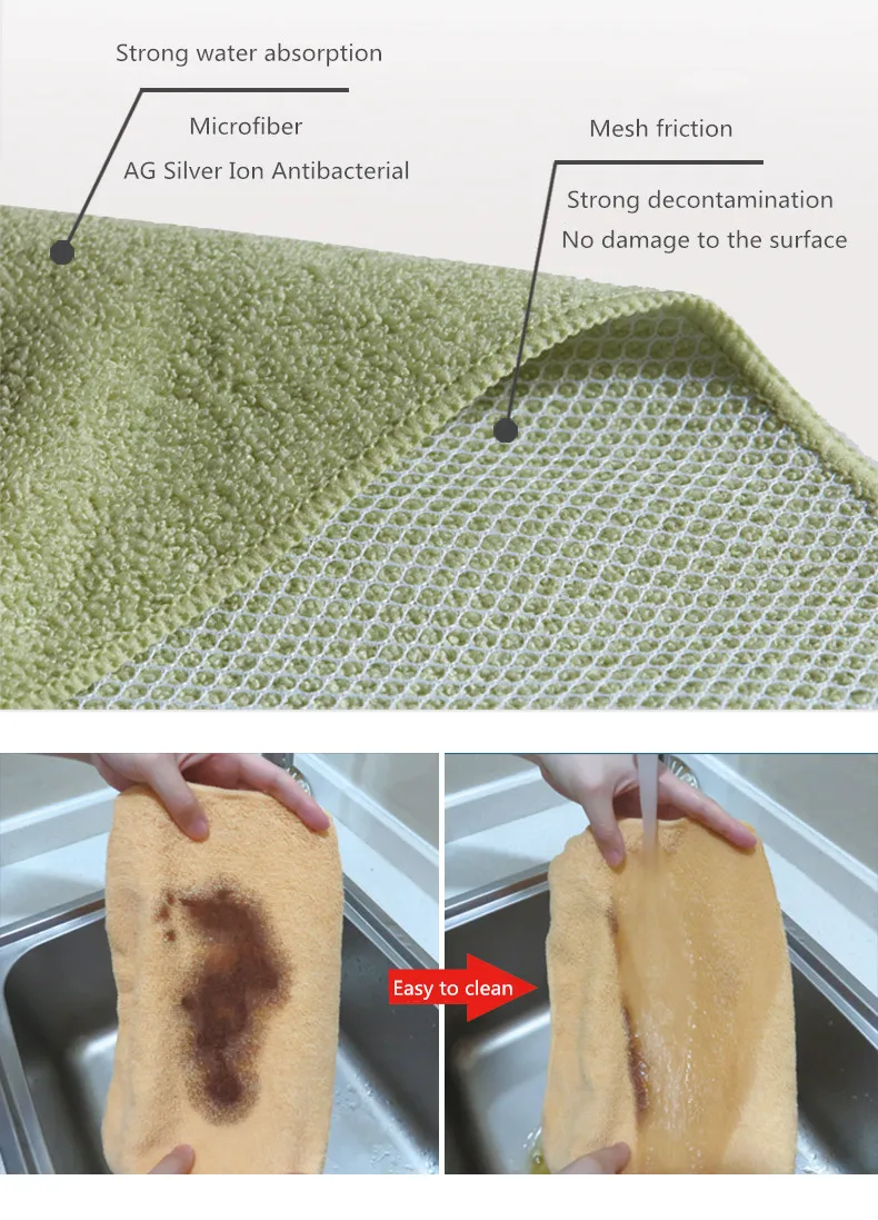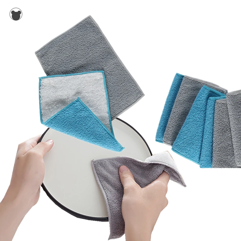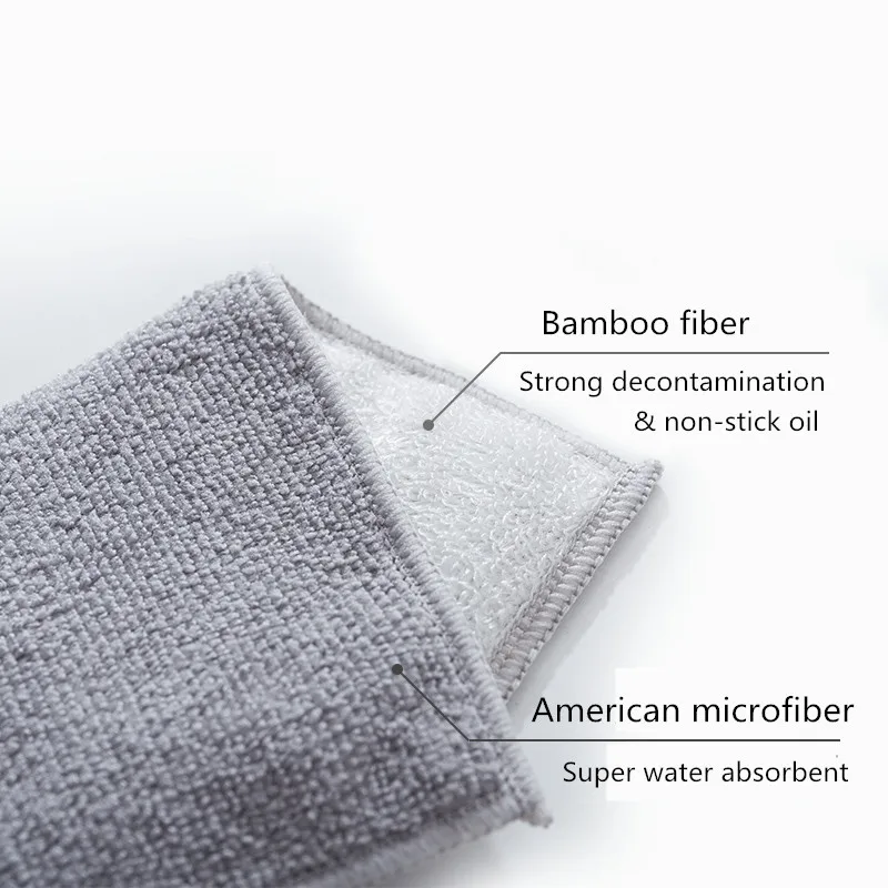2PCS Bamboo fiber microfiber double-sided dish towel 21cm*15cm