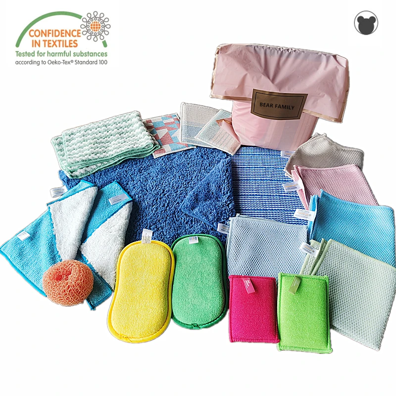 2PCS Bamboo fiber microfiber double-sided dish towel 21cm*15cm