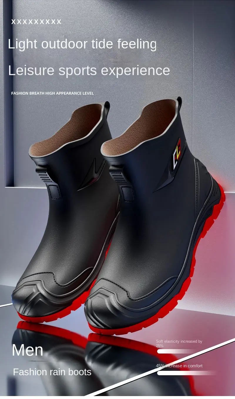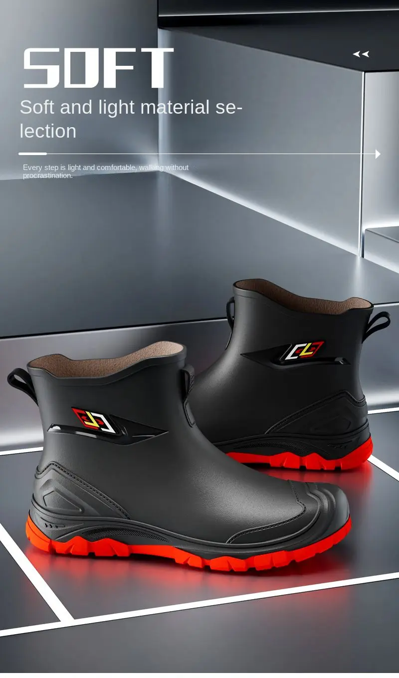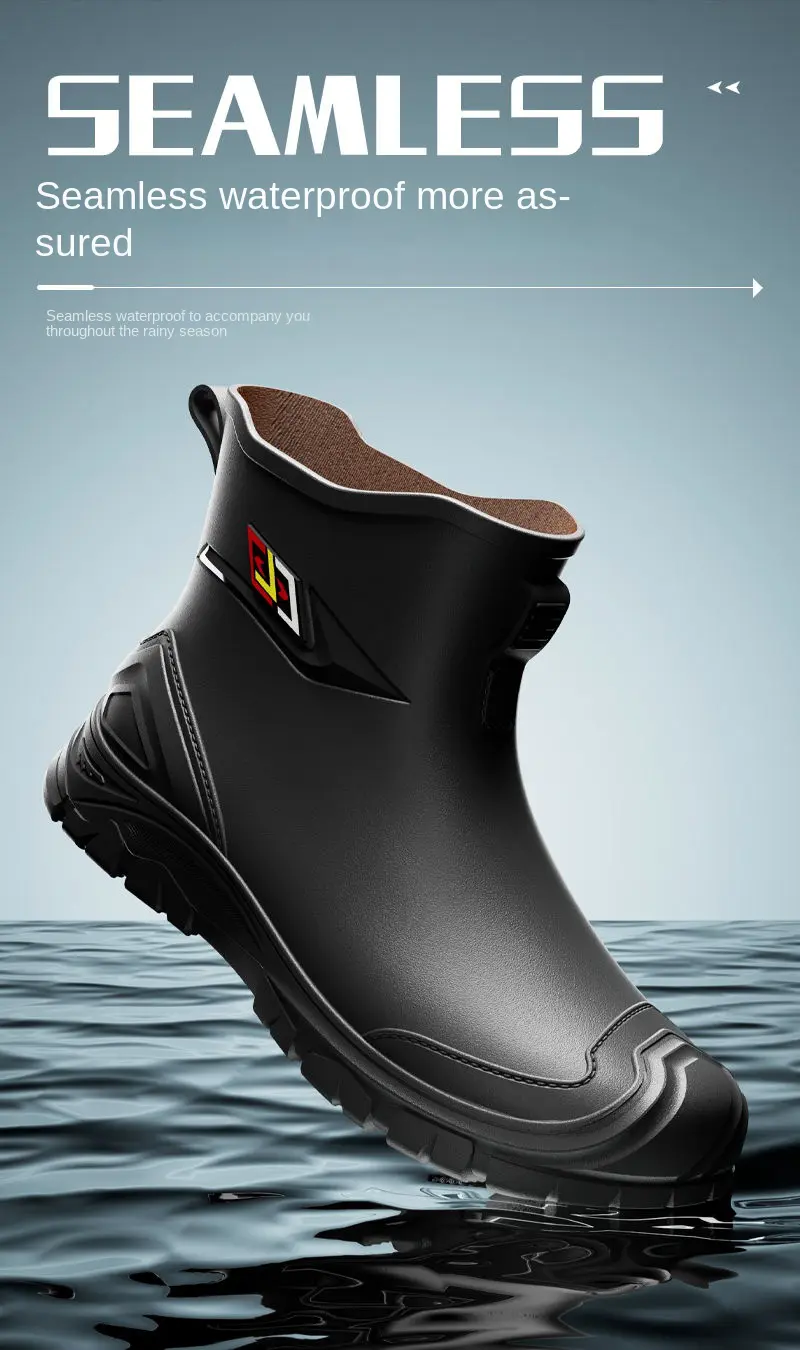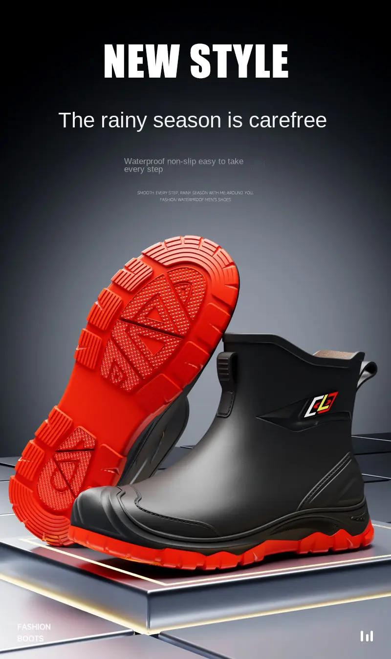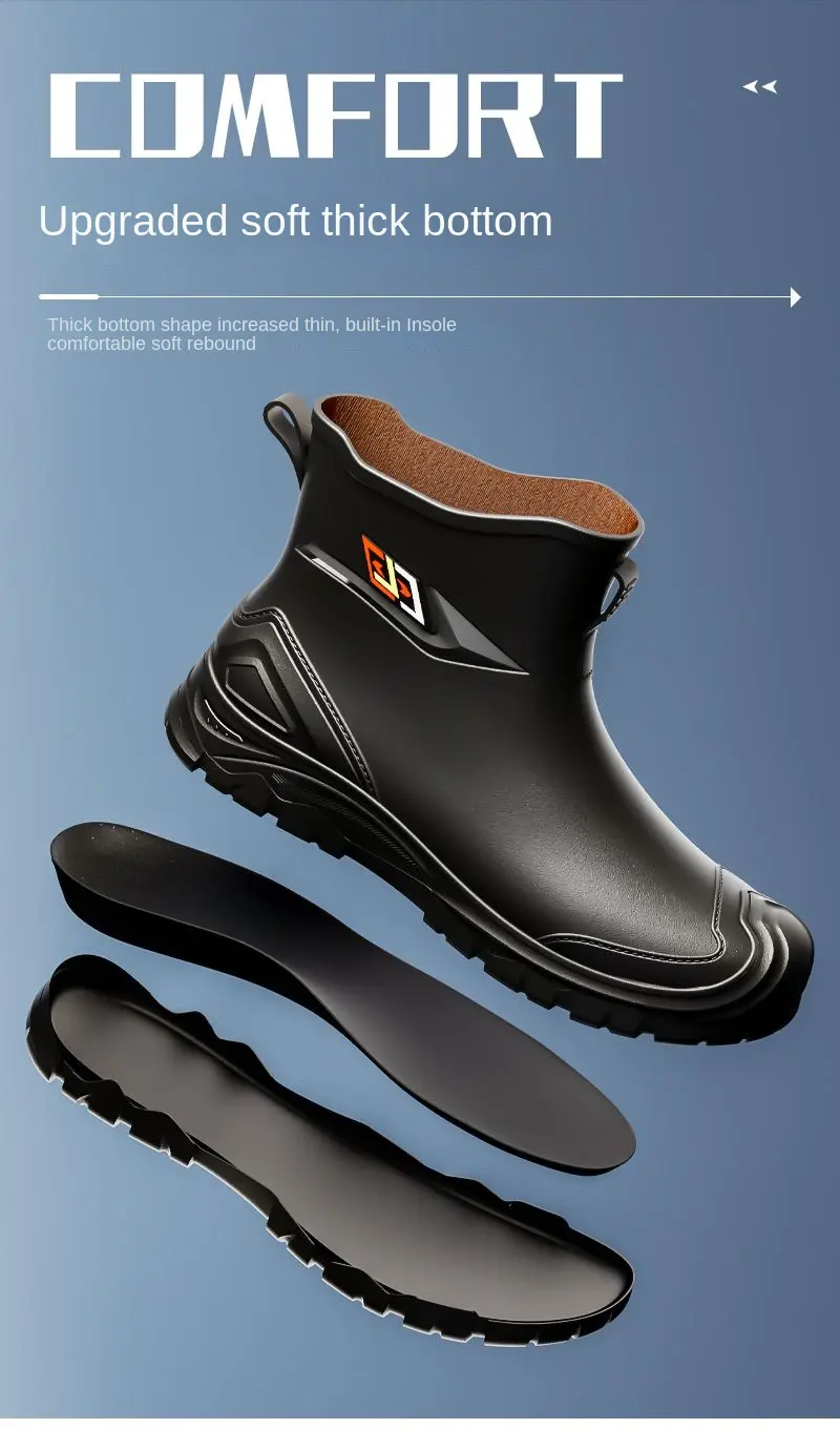 2024 New Men’s Water Boots Non-slip Work Rubber Shoes Outdoor Rain Boots Men’s New Waterproof Shoes Casual Camping Fishing Shoes
