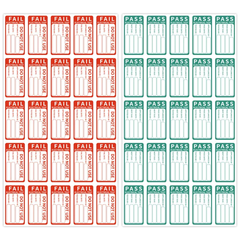 25CPS PAT Test Passed or Failed Stickers Electrical Safety Self Adhesive Labels Vinyl APPLIANCE ID PASS DATE NEXT DUE Stickers