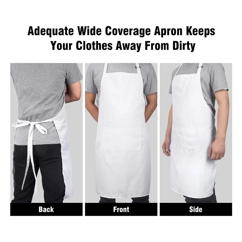 Features – Color: white. – Material: Polyester and TPU. – Size: About 75 x 65 cm (Please refer to the pictures for the specific sizes). – Hemoton adjustable bib apron, selects high quality material, through fine workmanship, waterproof and oil-proof, wear it and cover your clothes to prevent oil stain or water stain, create a tidy and clean cooking environment for you. – The adjustable bib apron is soft and breathable, with no odour because of the strict quality inspection. It will not fade even after many times washing, the waterproof effect is pretty good also. – Adjustable neck strap with long ties design for providing you the most suitable length, one size fit most, no matter you are a man or woman, thin or fat, you can adjust it according your demands. – 2 reinforce seamed pockets on the front of the adjustable bib apron, great for holding some cooking essentials, such as meat thermometer, condiment, mobile phones, recipe cards and so on. – The bib apron provides great coverage and protection from kitchen grease, spills and food stains, fits for home chef, professional chef, waiter, worker, painter and etc. Packing list 2 pcs