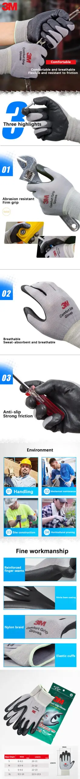 3M Protective Gloves Wear-resistant and non-slip Work Gloves Nitrile Coated Industrial Gloves Safety Protection