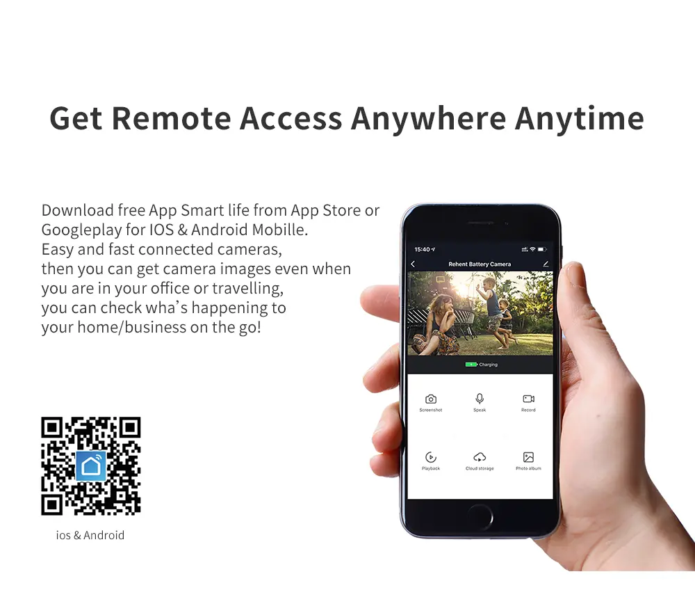 Instant APP notifications + Alarm Snapshot + Event recorded to TF Card or Cloud Storage