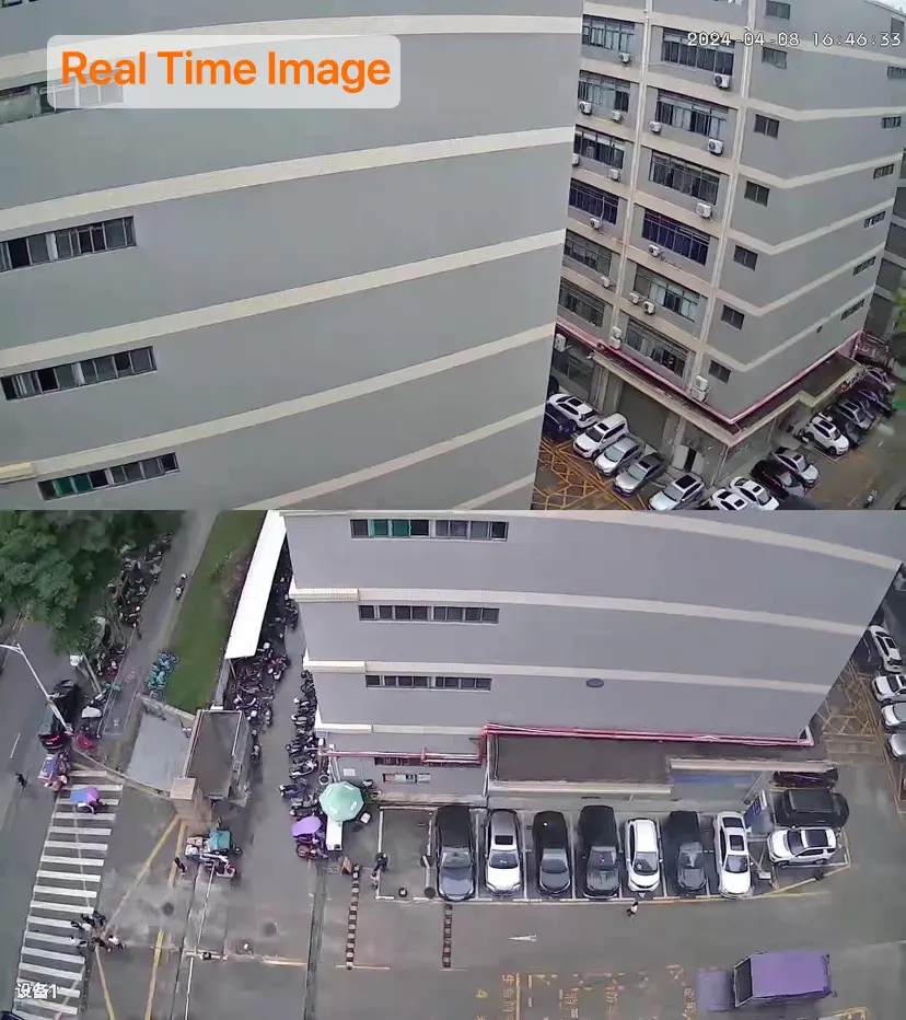 There are 2 video screens in APP, the upper one is fixed position camera and the lower one is PTZ camera.