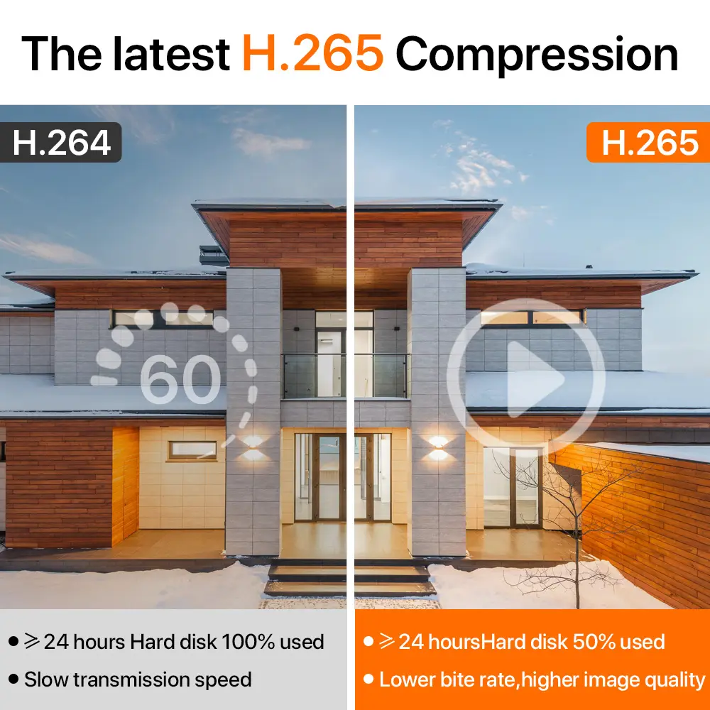Save you 50% of storage space. Provide you with up to 50% excellent bandwidth improvement, faster image transmission speed, and enjoy smoother video playback speed
