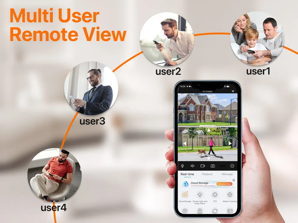 Your camera supports multiple users to view on their iPhone/Android phones at the same time. You can share your camera with your friends and family and share great moments.