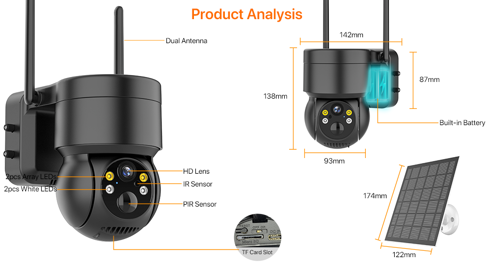 The camera support SD-card up to 256GB and Cloud Storge, you can save important videos and photos.