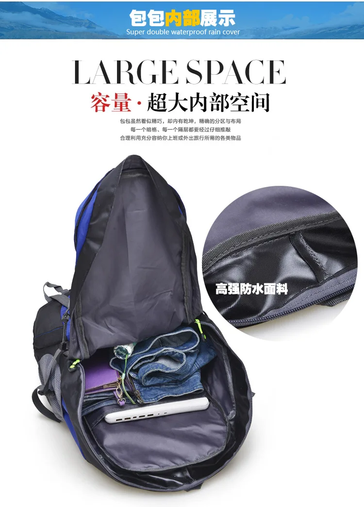 50L Outdoor Hiking Bag Travel Backpack Waterproof Mountaineering Trekking Camping Climbing Sport Bags Rucksack