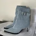 Pumps For Women New Design Denim Buckle Thin High Heels Ankle Boots Zipper Pointed Toe Banquet Solid Fashion Women ShoesCNY 338.00/piece