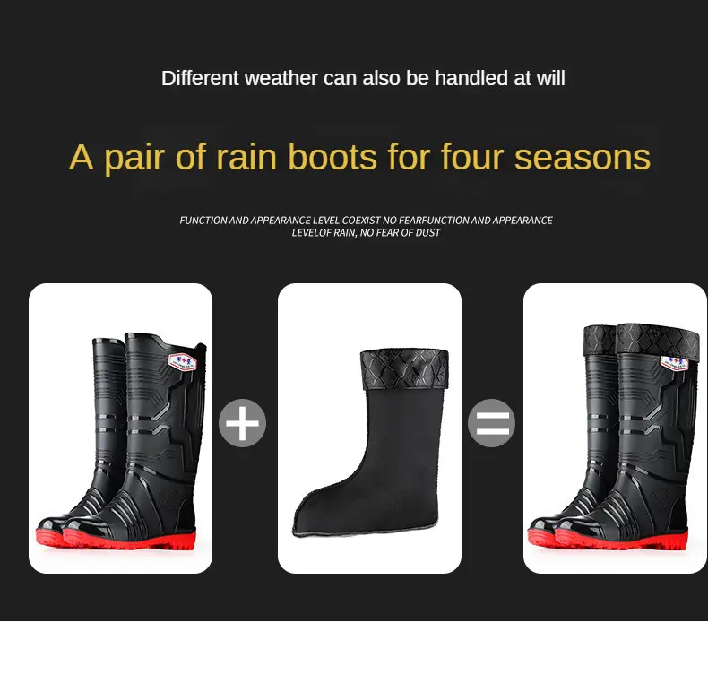 Women’s High Rain Boots Wear Detachable Waterproof Rubber Shoes PVC Anti-slip Wear-resistant Velvet Fashion Solid Water ShoesCNY 171.43-179.66/pairPay attention to this problem