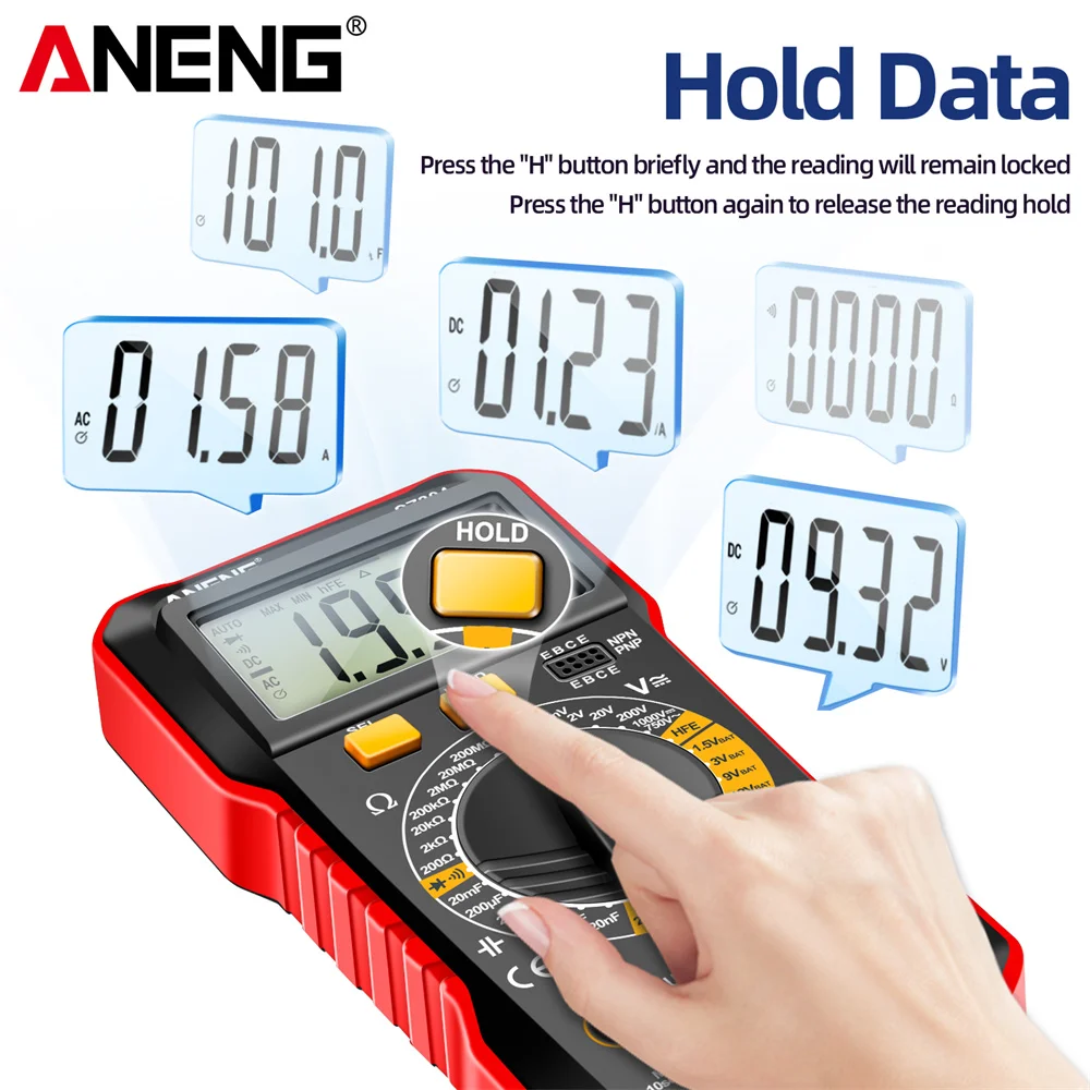 ANENG SZ304 is a handheld digital multimeter, designed and produced according to international electrical safety standards, used to measure AC/DC voltage, AC/DC current, resistance, capacitance, diode and other functions.