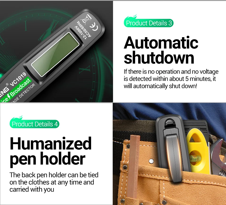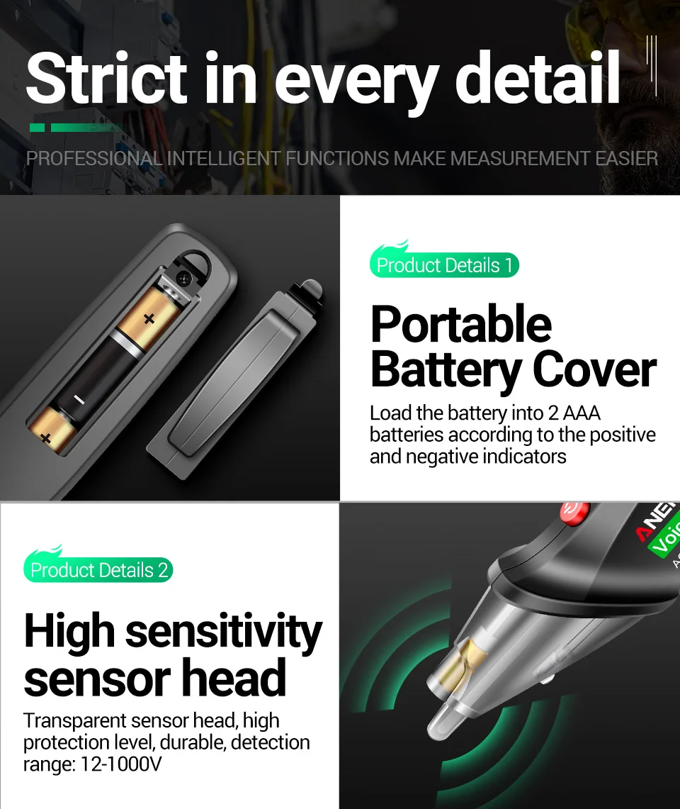 ANENG VC1019 Intelligent Voice Broadcast Tester Pen 12V-1000V Infrared Sensor Positioning Voltage Tester Electric Wire Detector