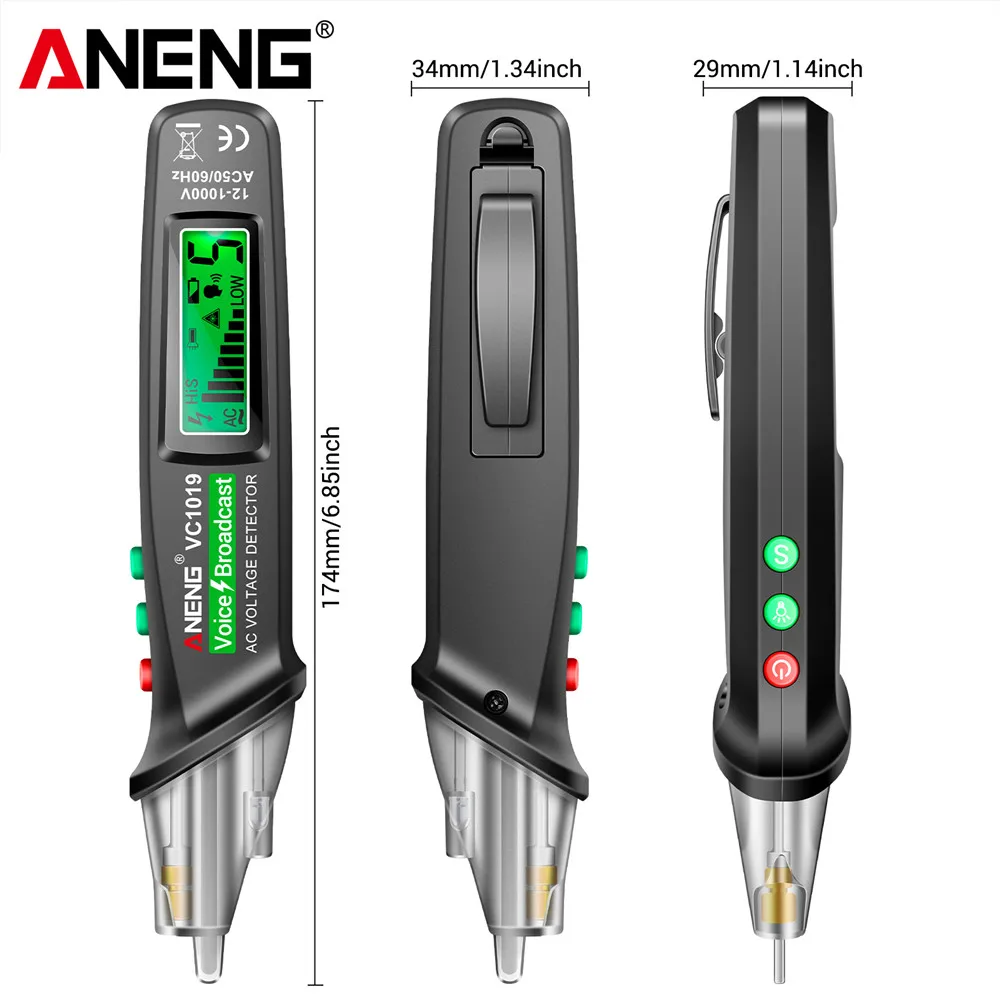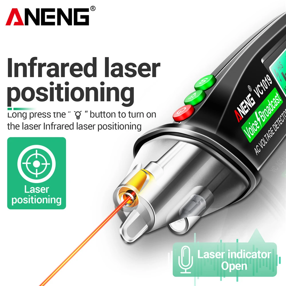 ANENG VC1019 Intelligent Voice Broadcast Tester Pen 12V-1000V Infrared Sensor Positioning Voltage Tester Electric Wire Detector