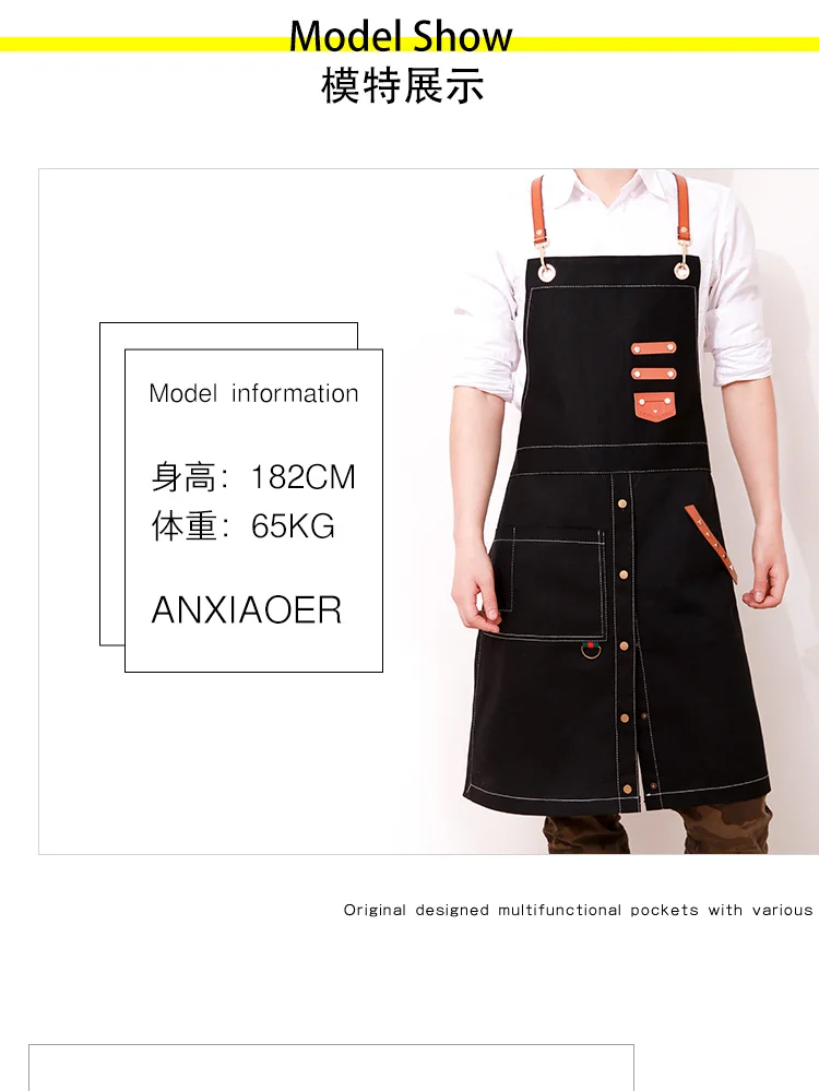 Apron Korean fashion cowboy cafe tea shop barber men and women restaurant work clothes custom printed logo