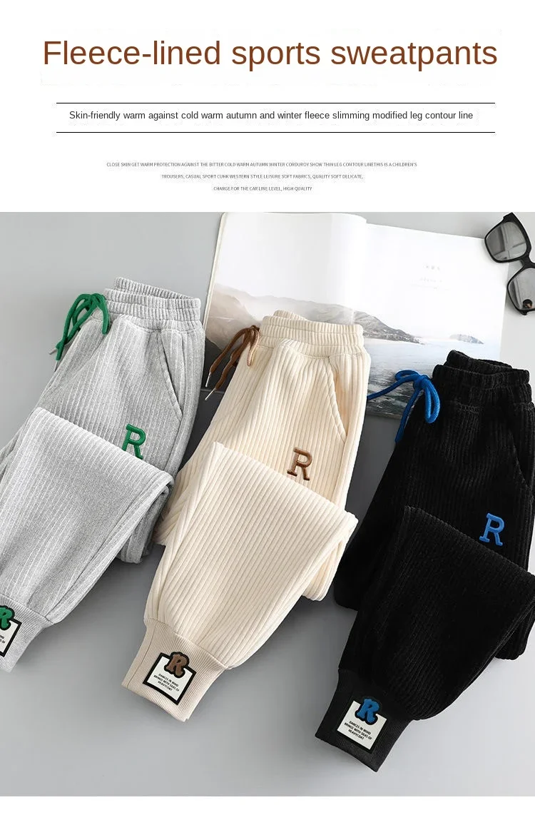 Autumn Winter Kid Teenage Girls Loose Corduroy Sweatpant Fleece Trousers Jogger Pant for Children Casual Sport Pants Boy Clothes