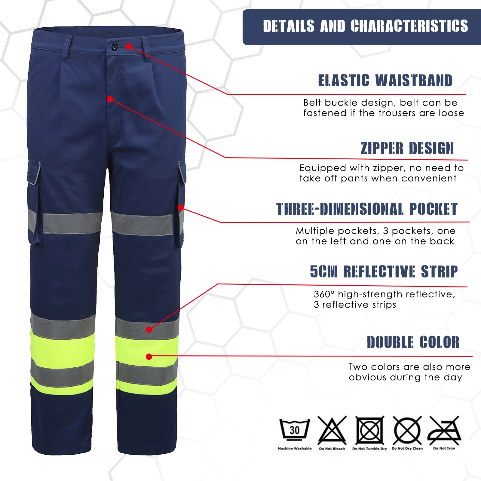 High Visibility: Reflective strips & elastic waist design, comfortable to wear.