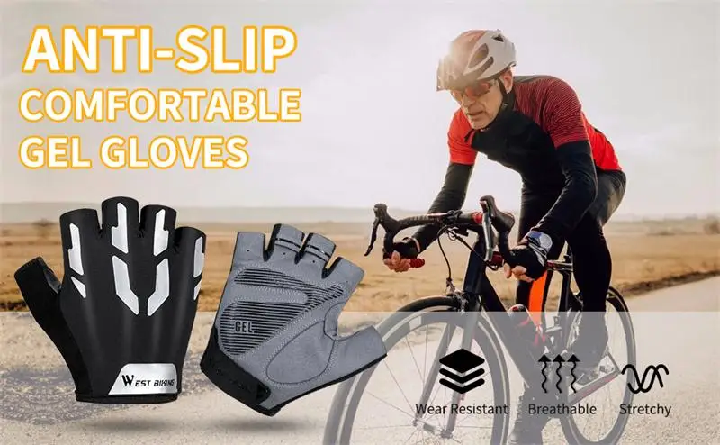 BIKING Shockproof Reflective Cycling Gloves Half Finger Sport Gloves Men Women Summer Gym Fitness MTB Road Bicycle Gloves