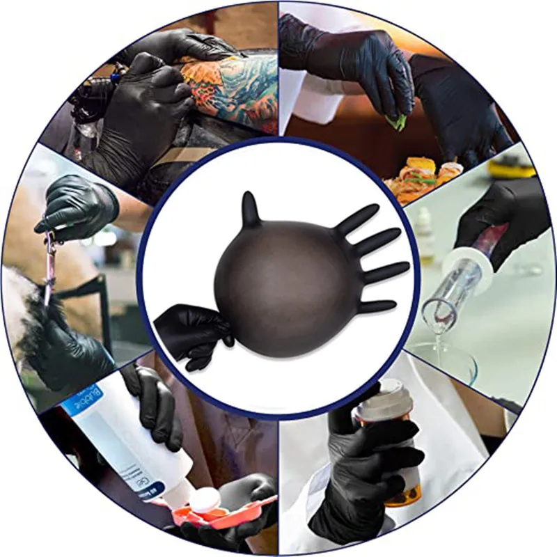 Black Disposable Chemical Resistant Rubber Nitrile Latex Work Housework Kitchen Home Cleaning Car Repair Tattoo Car Wash Gloves
