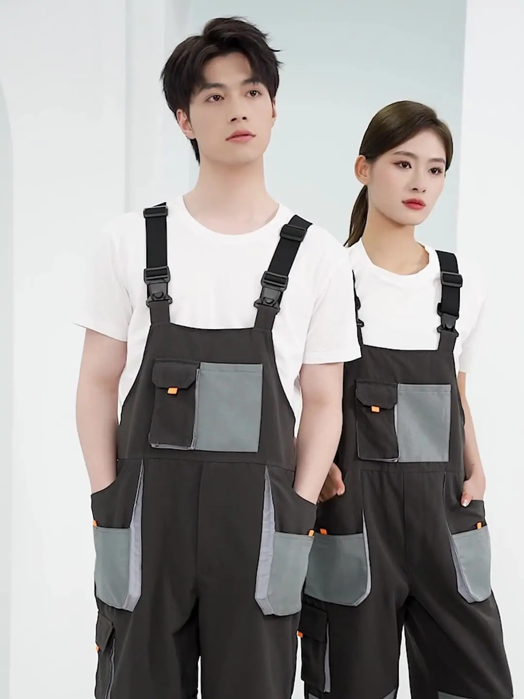 Black Grey Men’s Work Bib Overalls Brace Overall with Pockets Carpenter jumpsuit Work Overall Workwear work dungrees strap pants