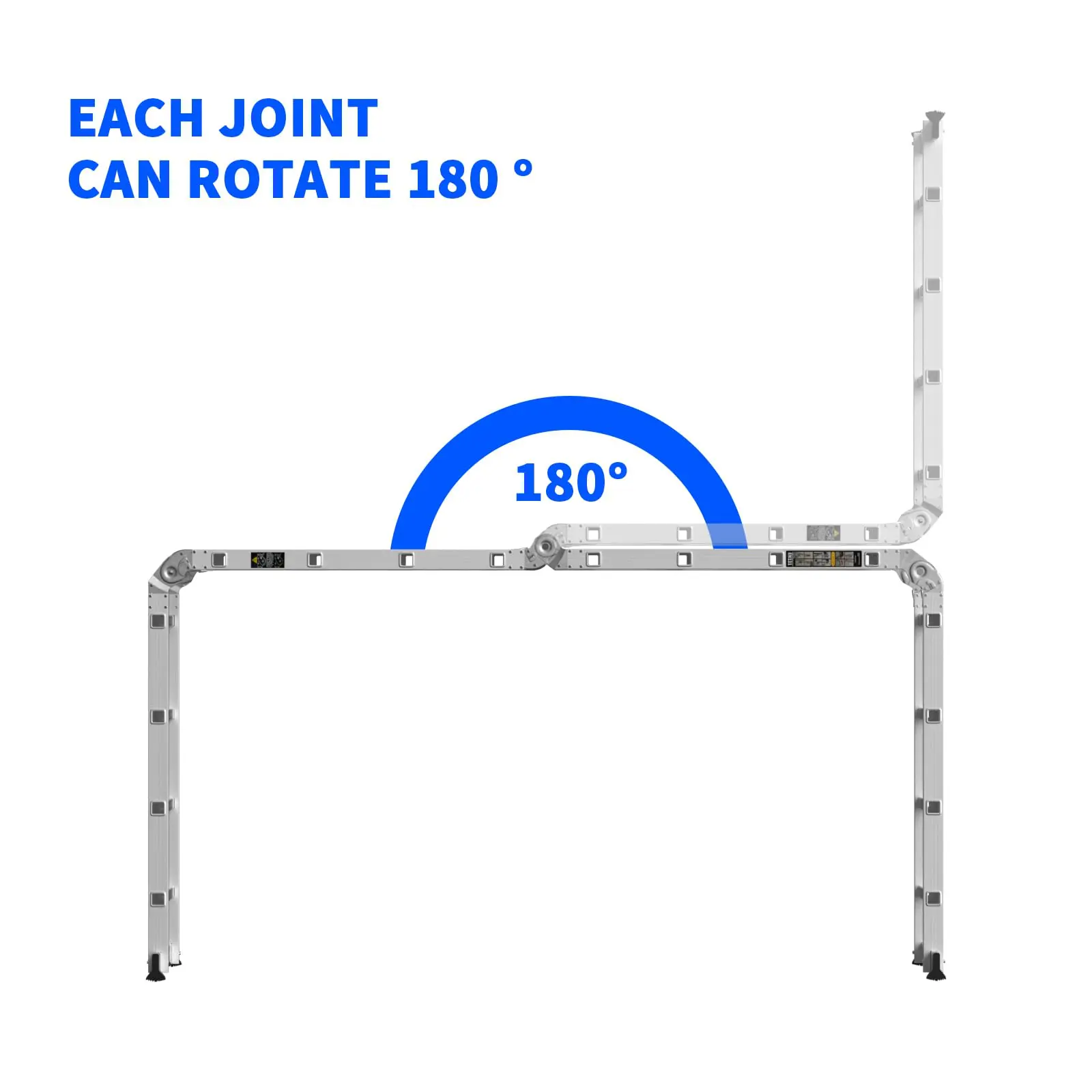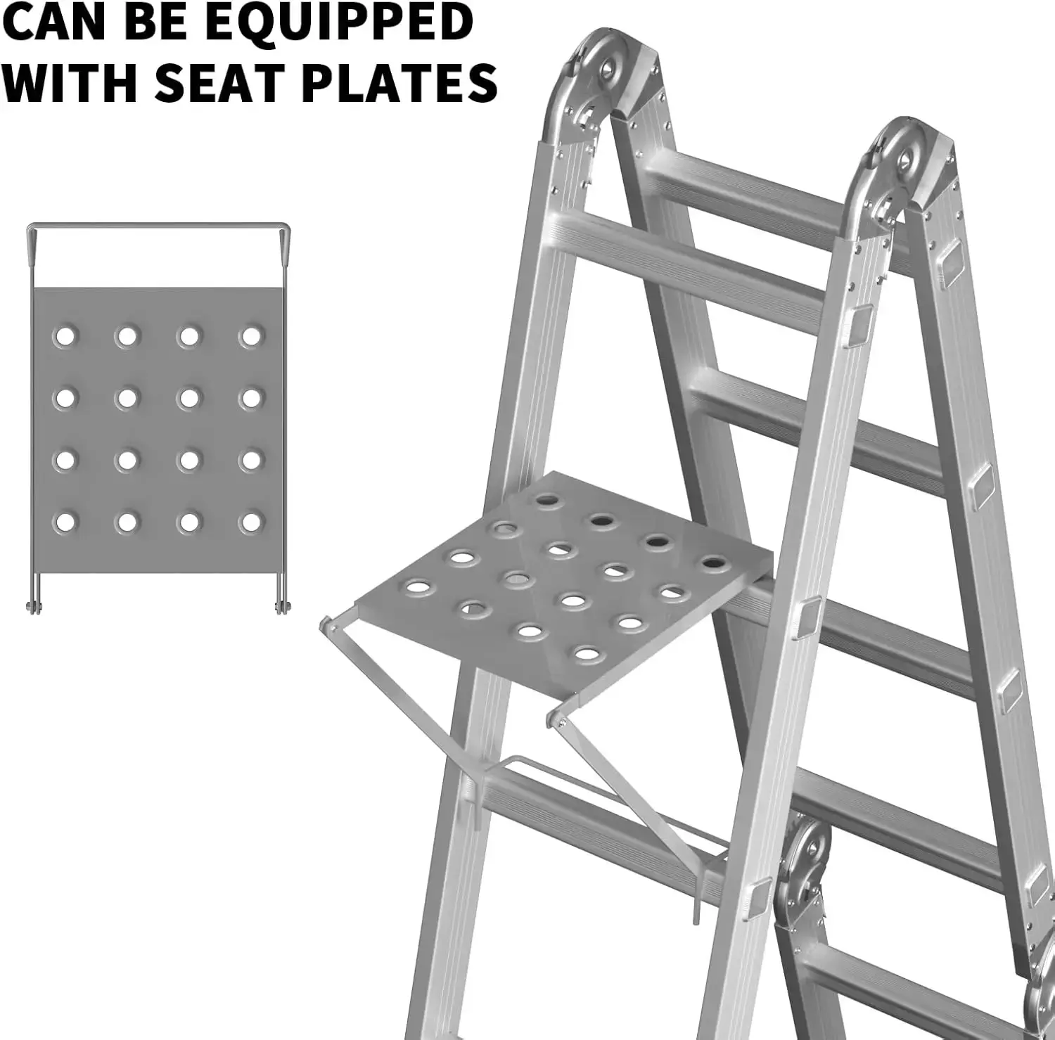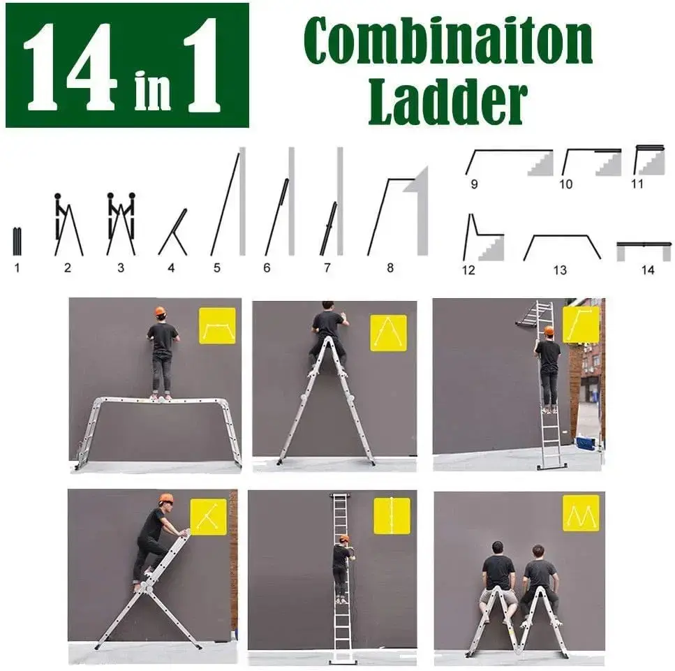 【14-in-1 Functions】This 4.7m multipurpose aluminum ladder can be easily transformed into many different shapes to meet your different working need. Can be turned into a step ladder( A-Frame ladder), a straight ladder, a scaffold ladder, an overhanging ladder or a stairwell scaffold etc.