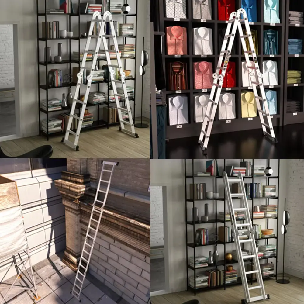This 15.4 ft Aluminum Multipurpose ladder, perfect to work as a Loft Extension Ladder, step ladder, straight ladder and A-frame ladder It is sturdy and tough enough to withstand the even most demanding jobs. it’s ideal for both commercial use and do-it-yourself, like home building maintenance, window washing, exterior or interior Decorating, painting, etc. And the folding design allows both easy transport and space-saving storage. It can be your good helper.
