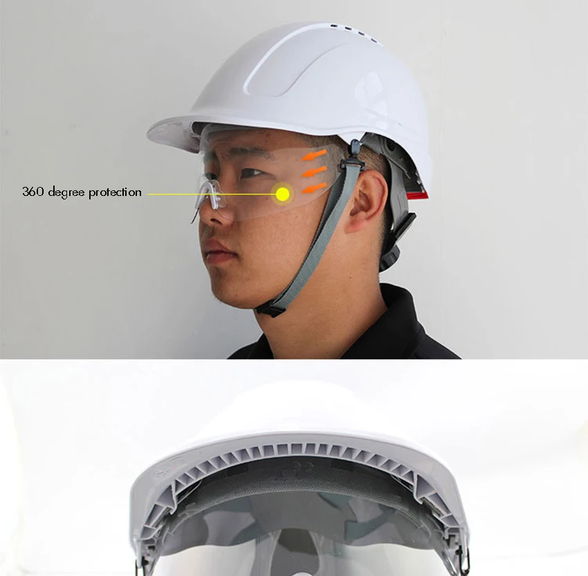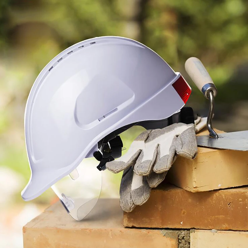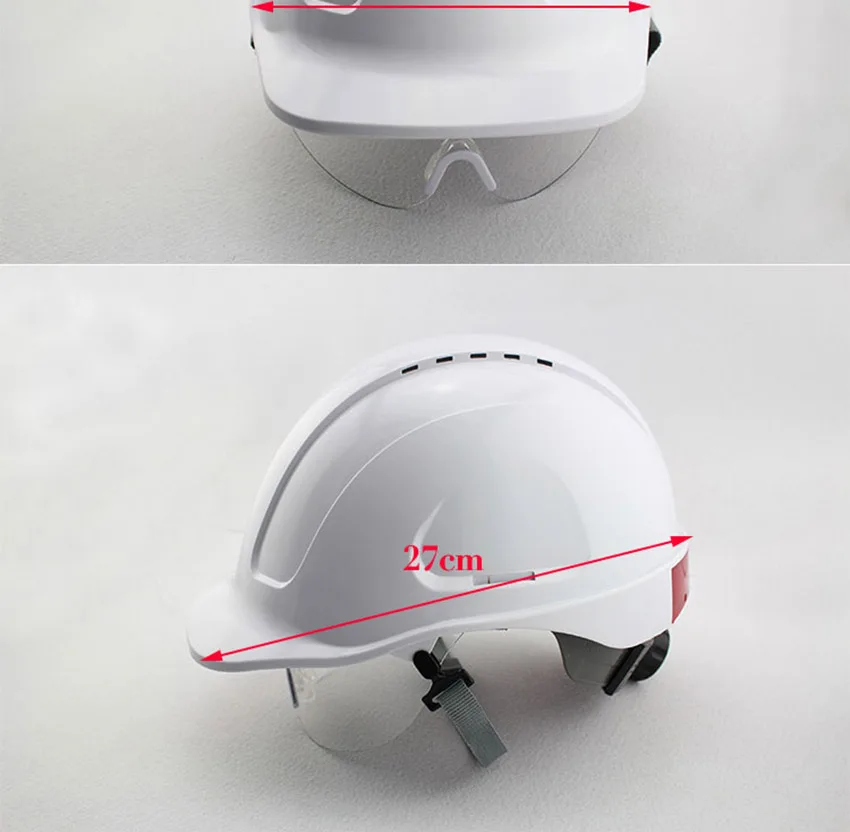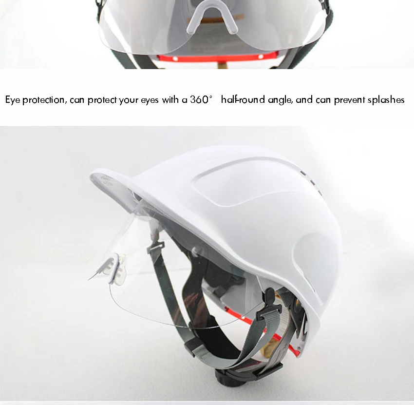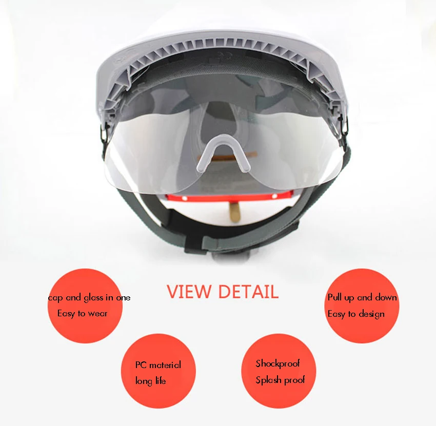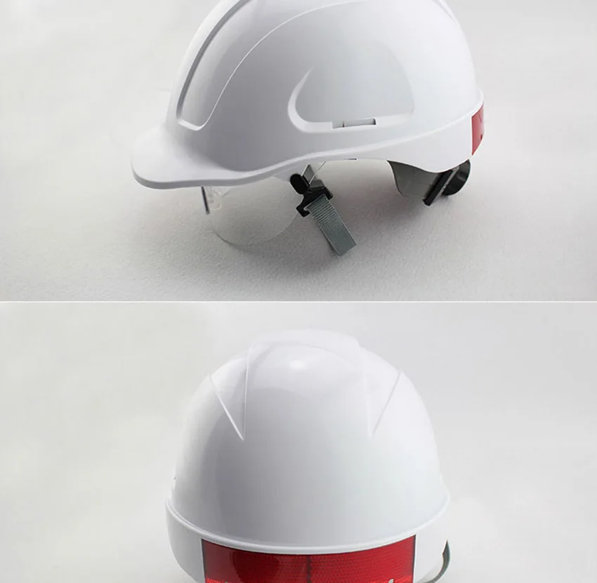 Cap Style Hard Hat with Protective Glasses, 8 Point Ratchet Suspension, Fluorescent Strip, Construction Helmets, Red, White