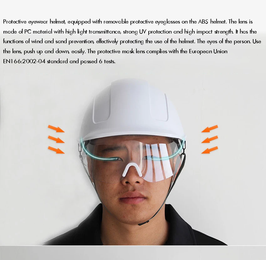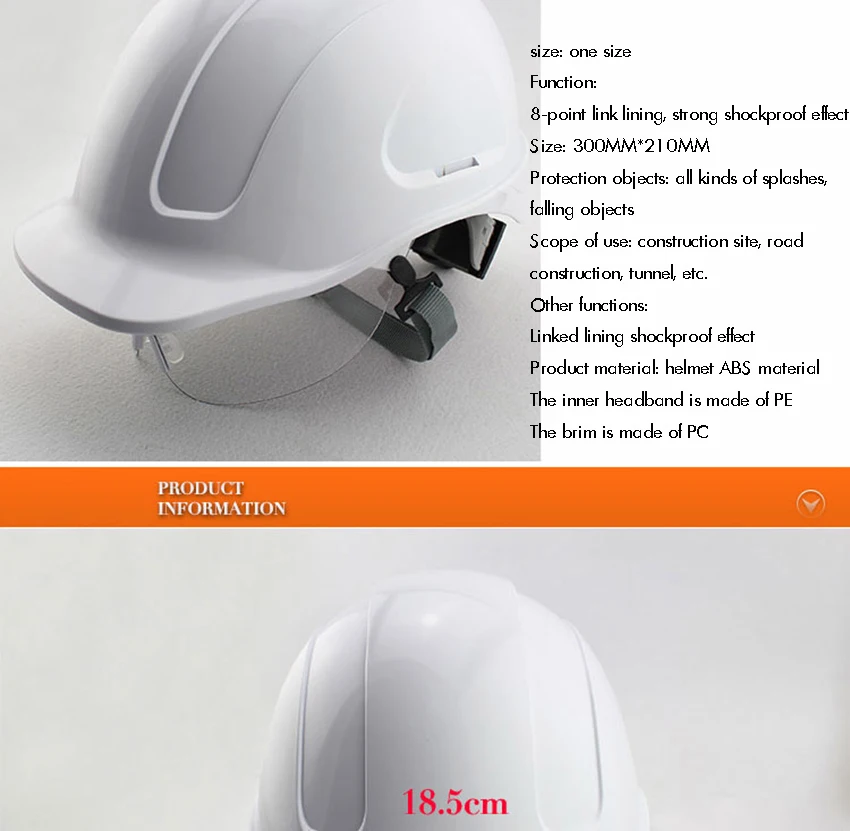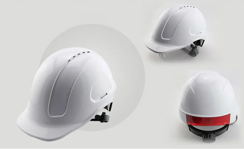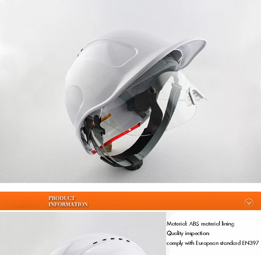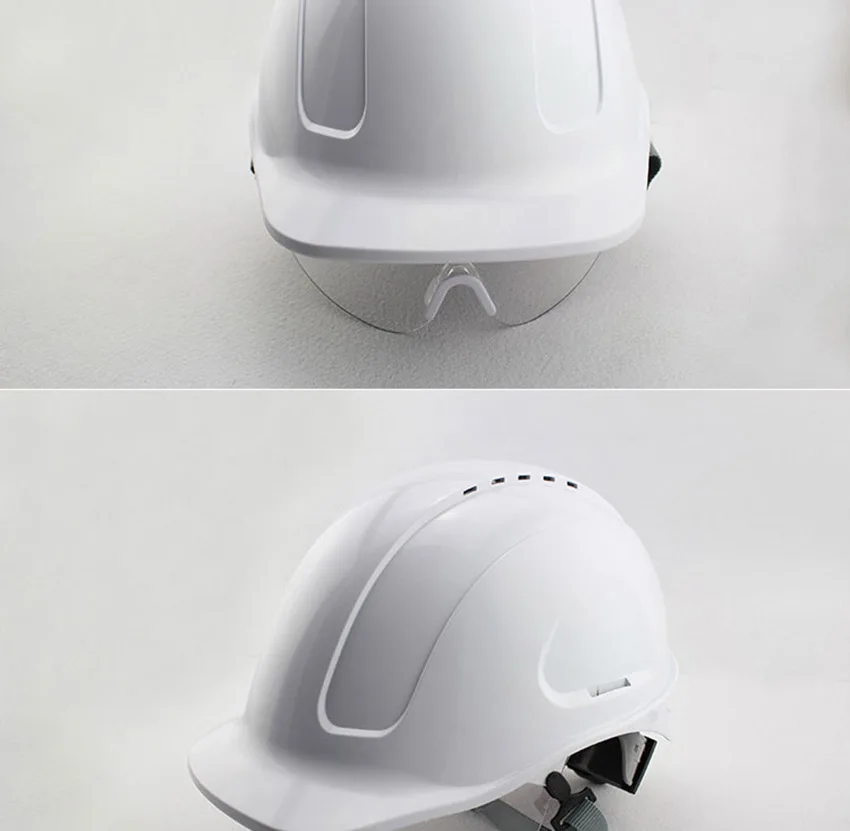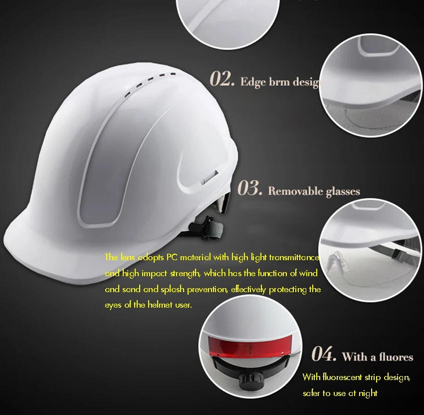 Cap Style Hard Hat with Protective Glasses, 8 Point Ratchet Suspension, Fluorescent Strip, Construction Helmets, Red, White