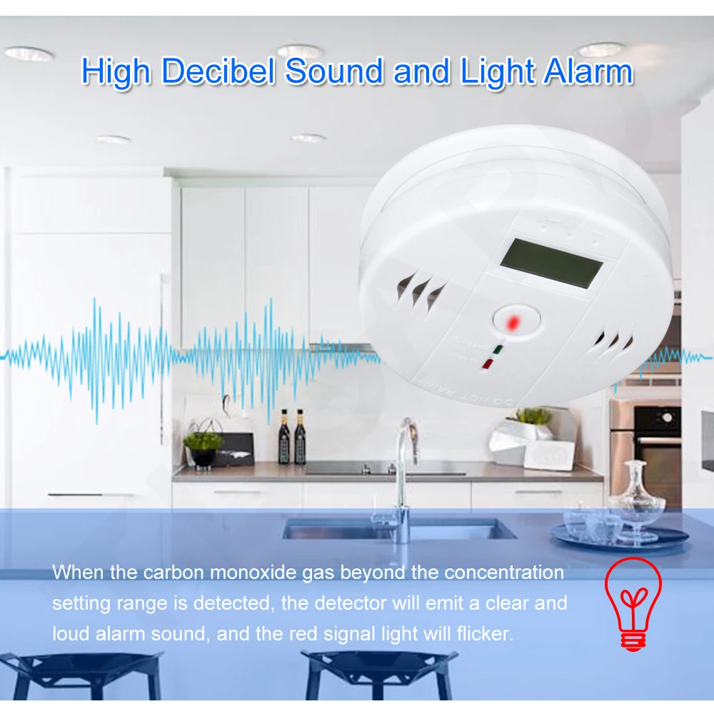 Carbon Monoxide Alarm CO Blue Smoke Detection LCD Display Detector Toxic Gas Leak Detector Honeycomb Coal Alarm