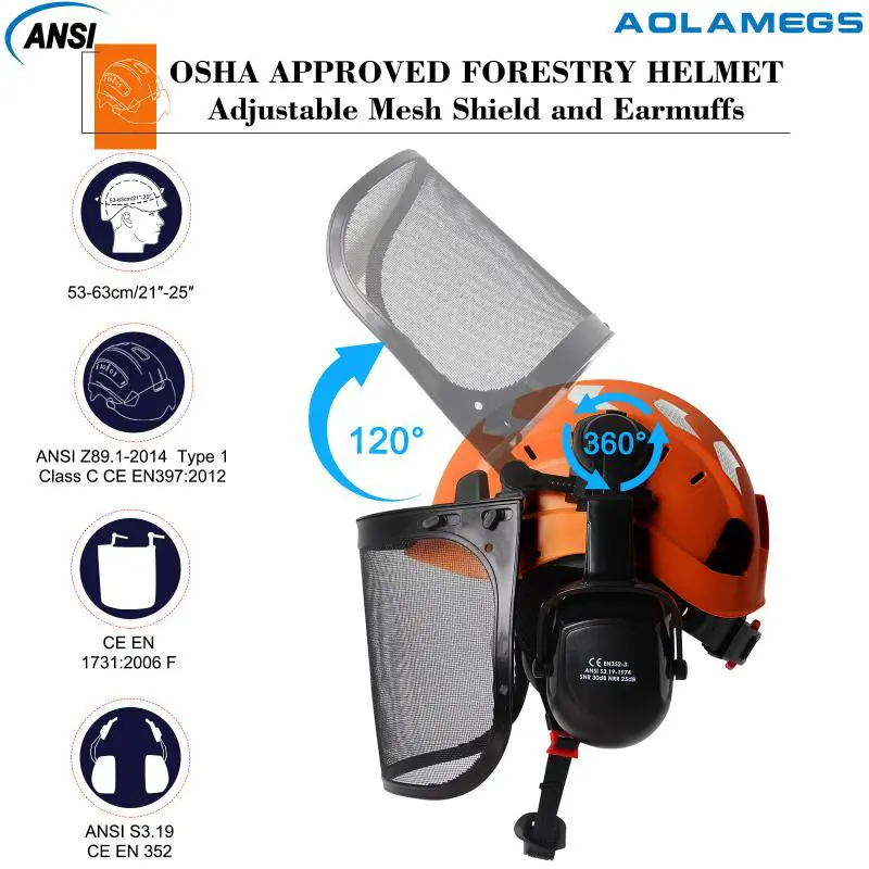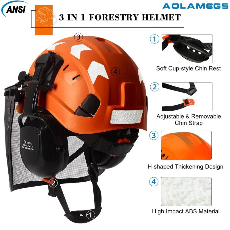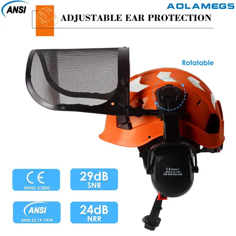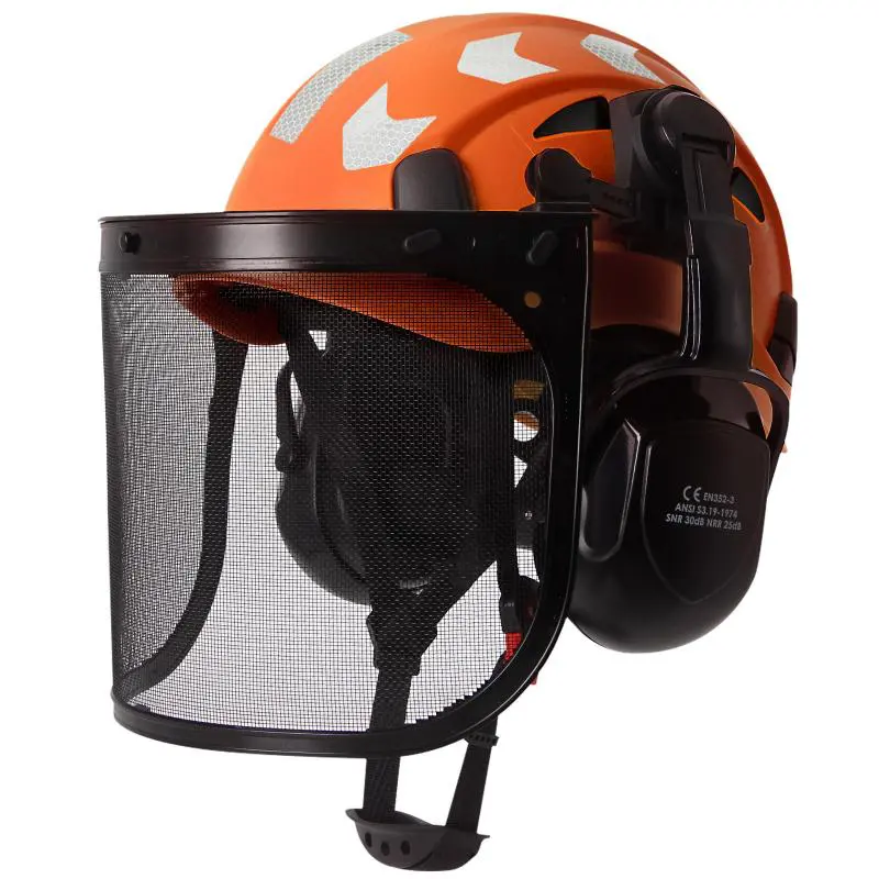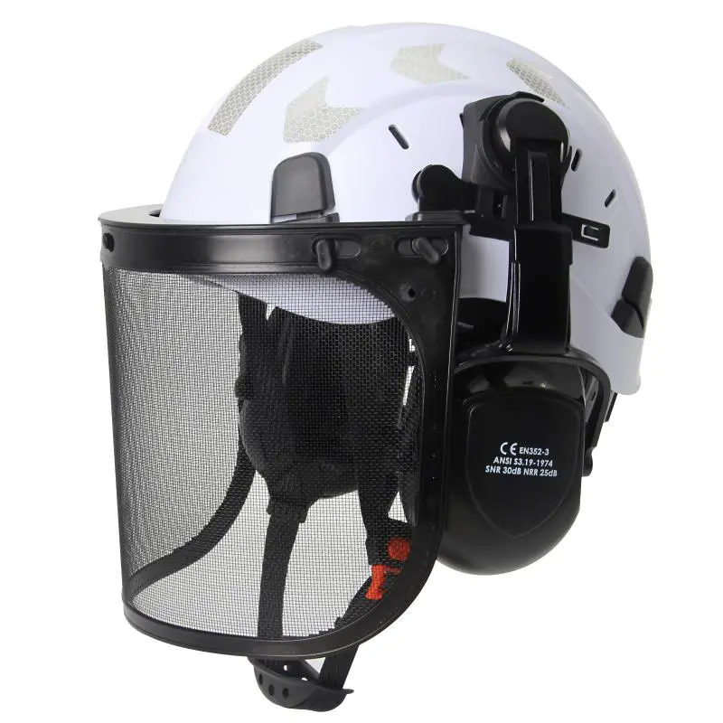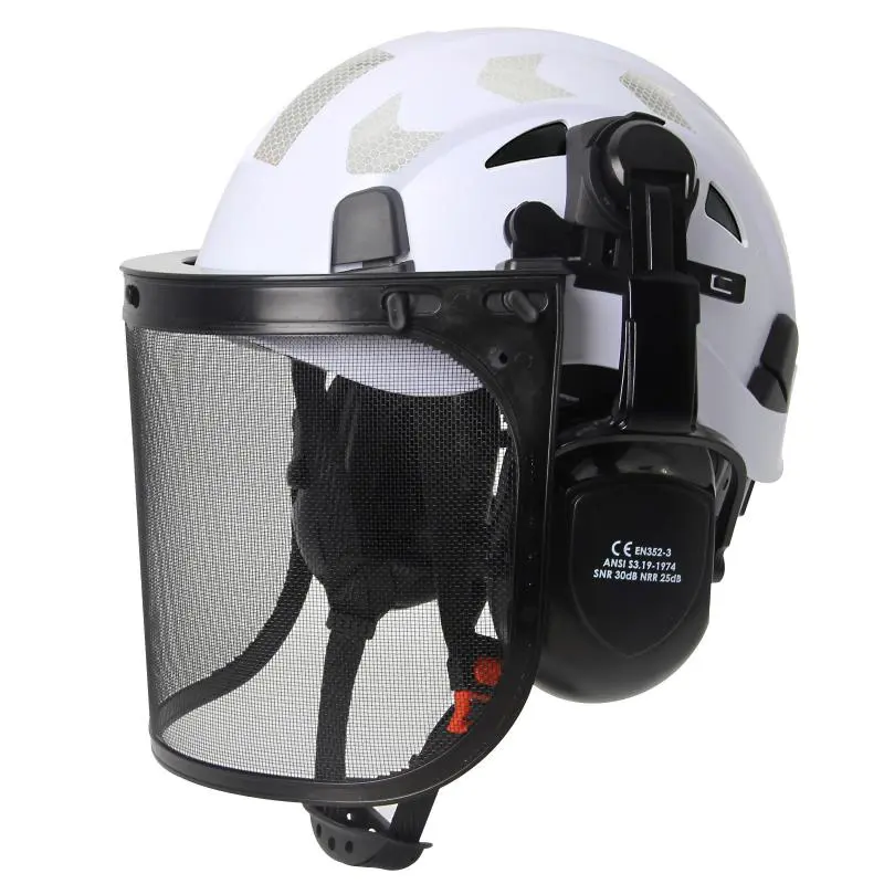 CE Forestry Safety Cap with Mesh Face Shield Earmuffs Reflective Stickers ABS ANSI Logging Brushcutter Trimmer Industry Work Hat