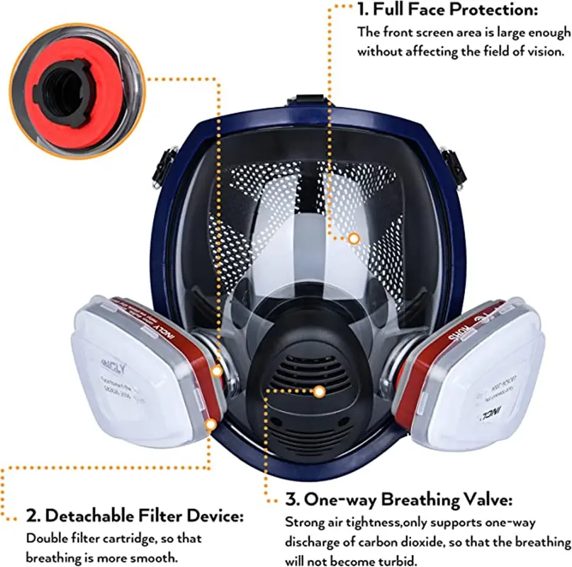 Chemical Gas Mask 6800 Dust Respirator Anti-Fog Full Face Mask Filter For Industrial Acid Gas, Welding Spray Paint Insecticide