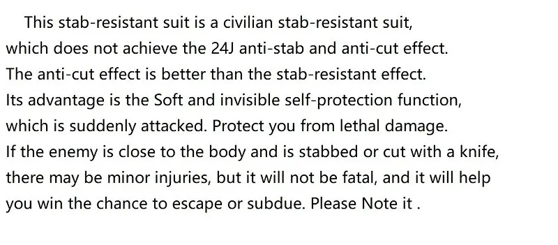 If you order our functional clothes(anti cut anti stab clothing) , pls read below information carefully, if you order other clothes, pls ingnore below information. thanks very much.