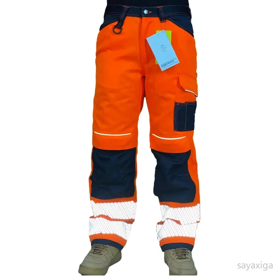 Cotton Reflective Pants Men Work Multi Pockets Hi Vis Pants High Visibility Work Wear Pants Road Construction Safety Trousers
