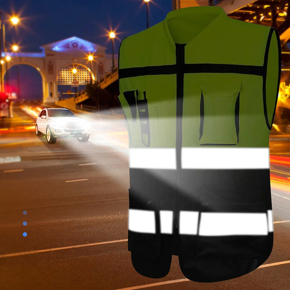 Custom LOGO Two Tone Safety Vests with Pockets and Zipper High Visibility Construction Working Vest Hi Vis Workwear
