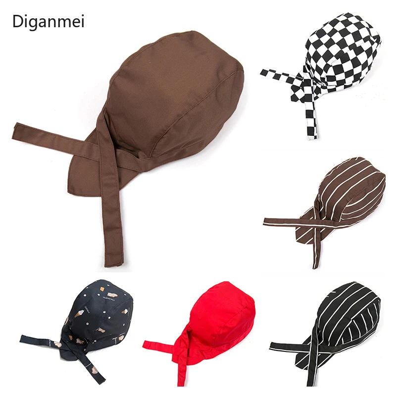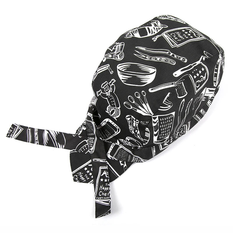 1 * Fashion Cutlery Style Chefs Hat Cap Kitchen Catering Skull Cap Ribbon Cap Turban