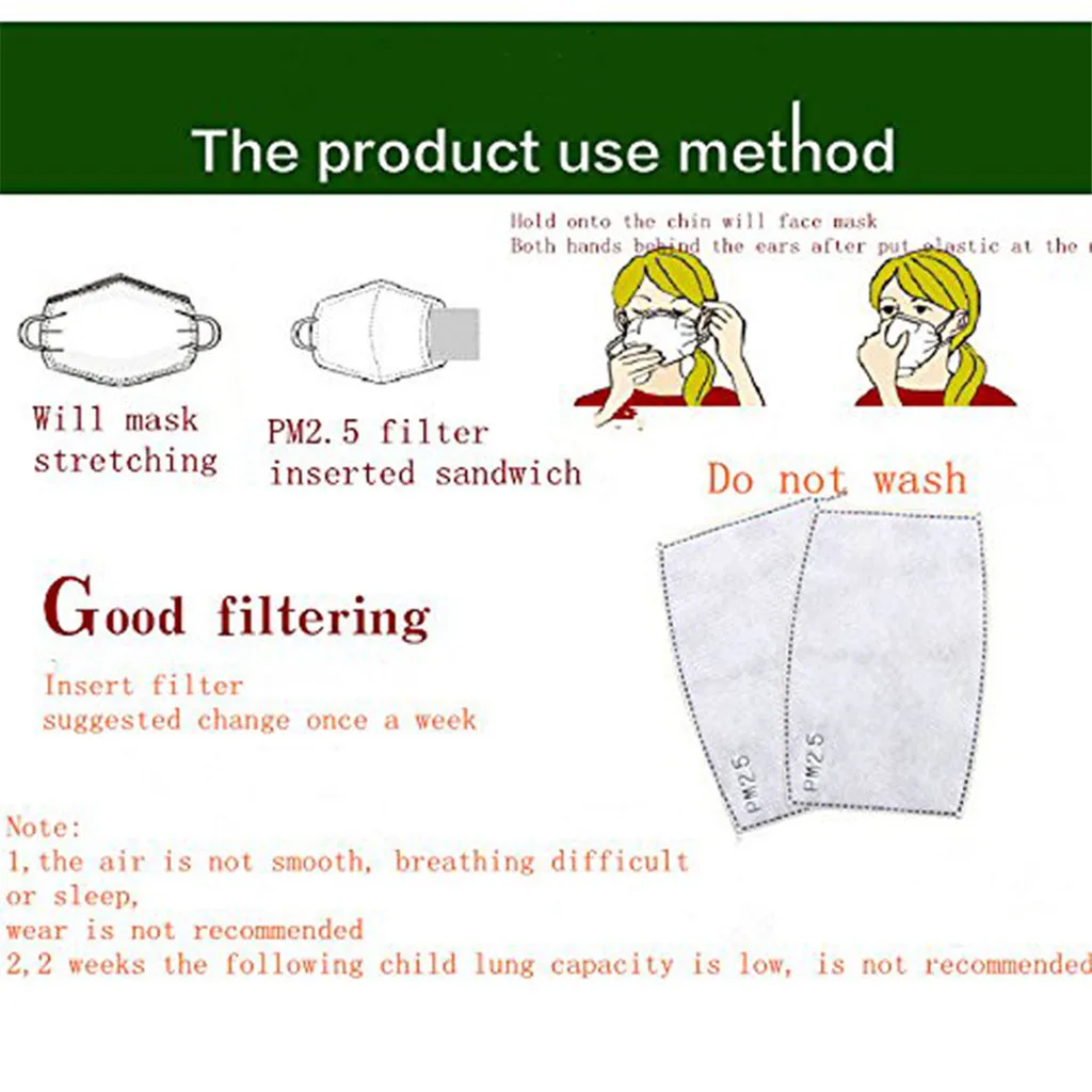 4.The mask filter provide comfortable protection for people.Suggest replace the fliters every week of uses for the best effect.