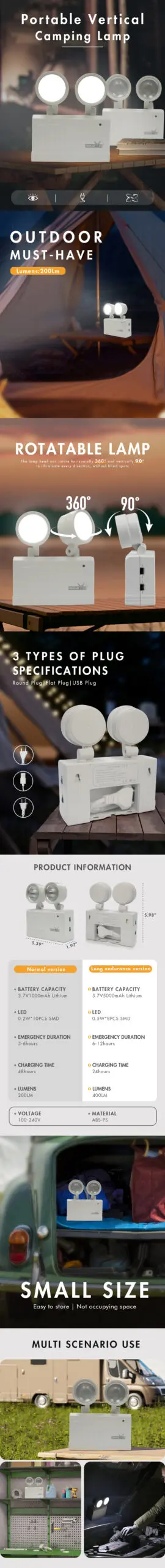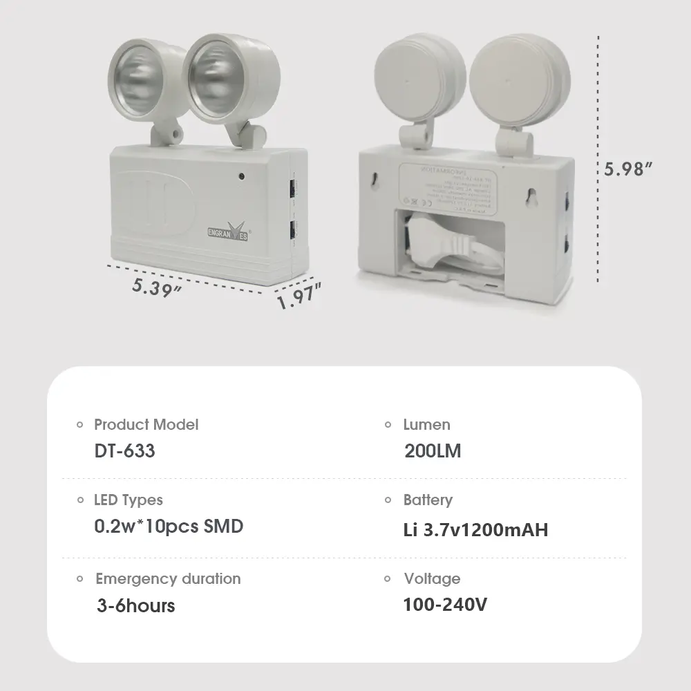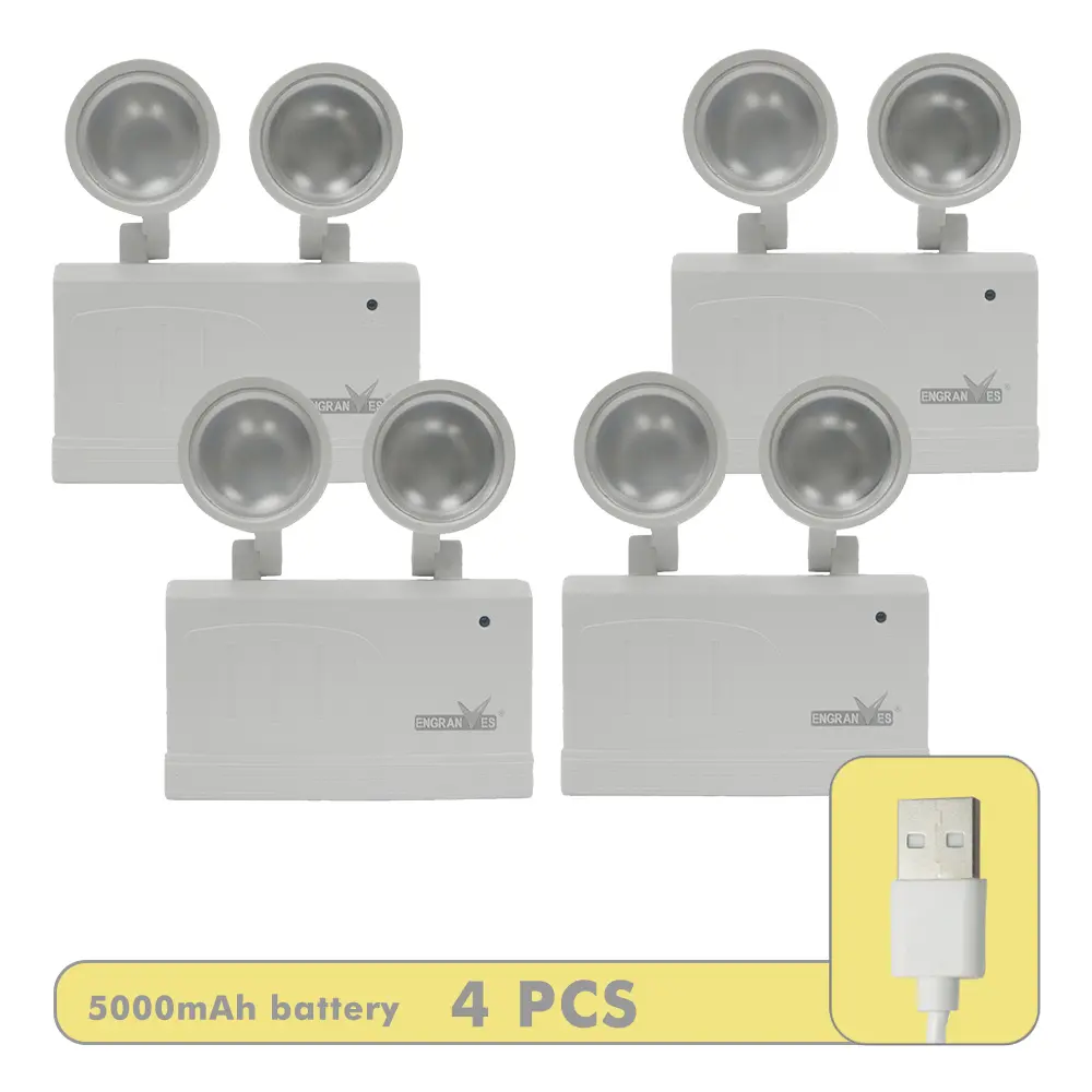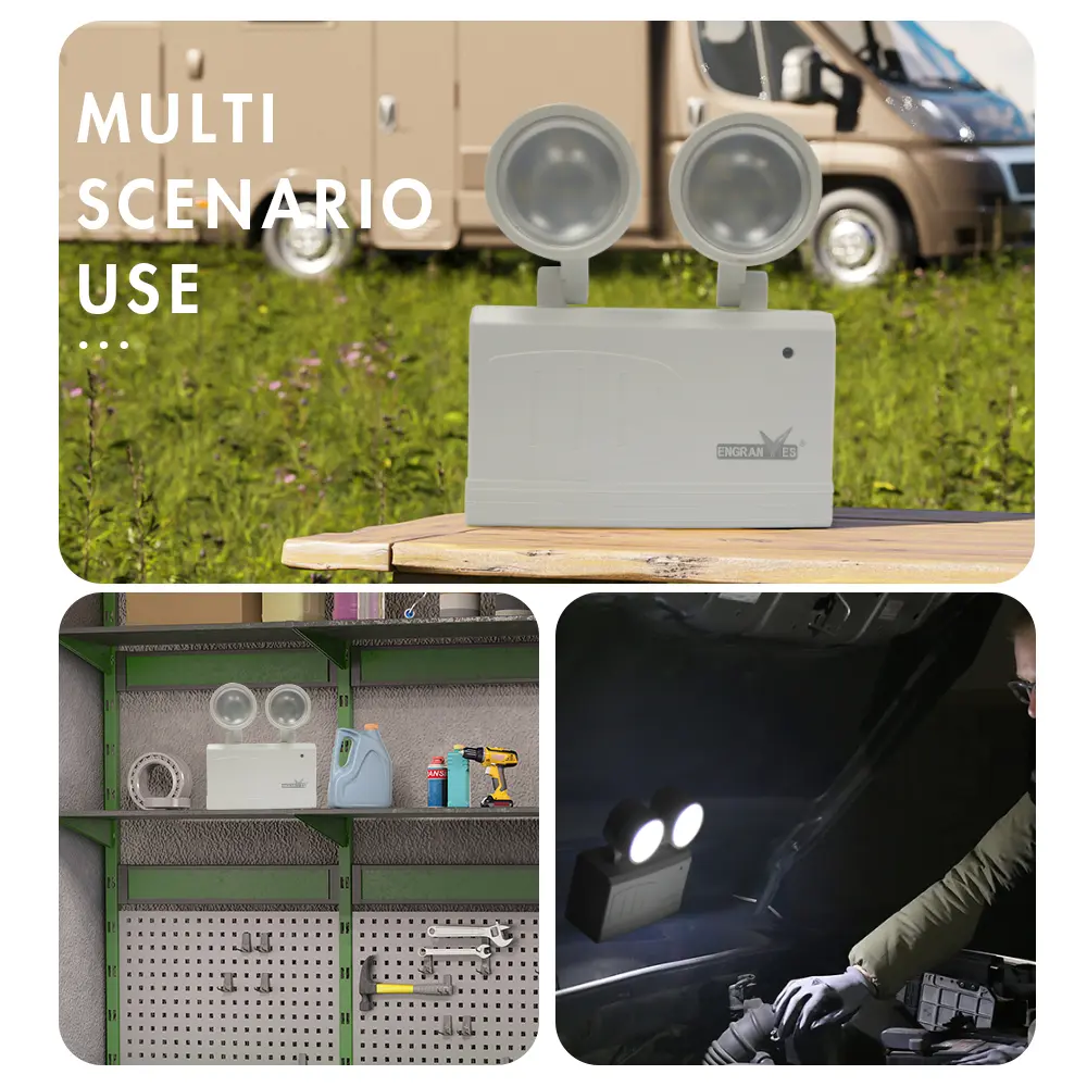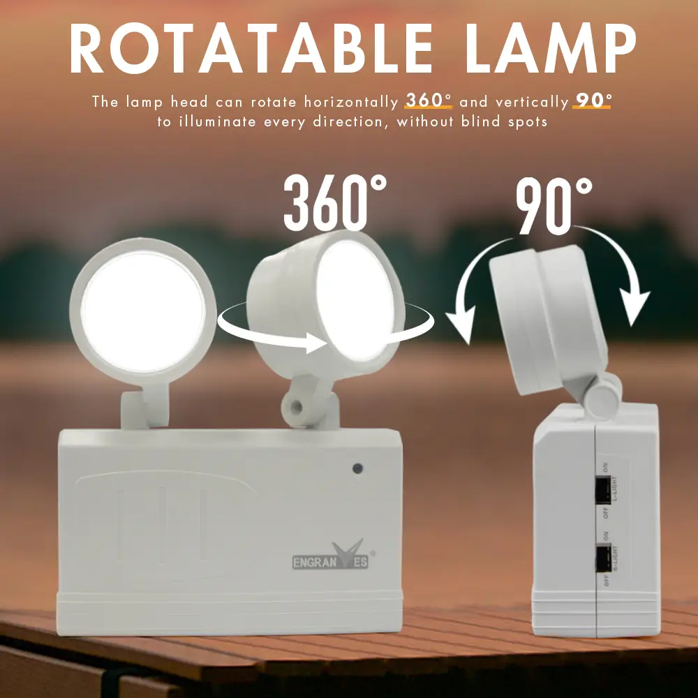 Dual-Head Emergency Lamp Rotatable Fire Safety Lighting Wall-Mounted Evacuation Light Portable Camping Light for Power Outage
