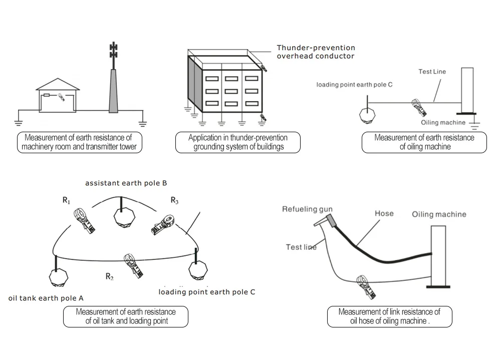 Autoranging ground resistance measurements from 0.01Ohm to 1000Ohm with 0.01Ohm resolution
