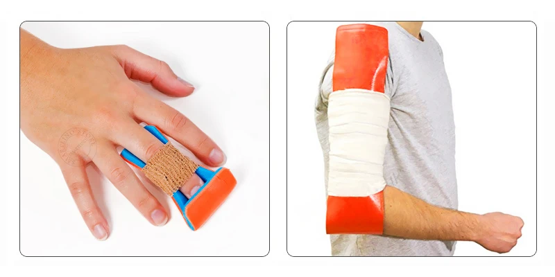 The moldable splints are made of a malleable aluminum it allows the splints to be universally used when properly folded the splint may be used as an emergency cervical collar for neck injuries. The moldable splints are fastened in place with any tape or wrap.