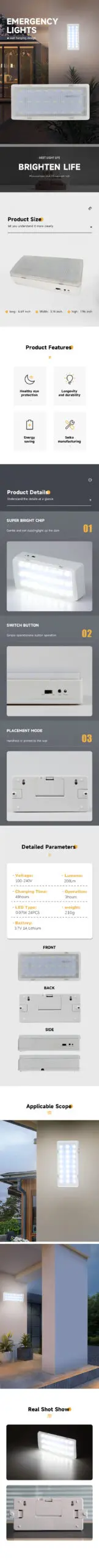Emergency Light Wall-mounted Rechargeable Emergency LED Light Portable Handheld Emergency Lighting Flashing light for Home Use