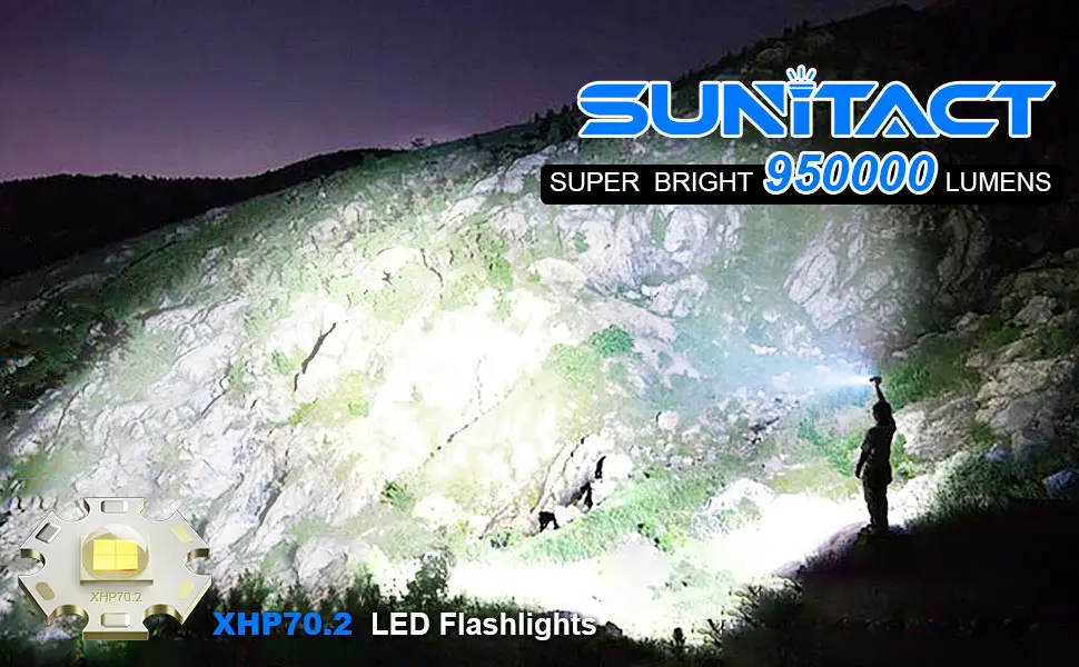 【 LINTERNA LED DE 950000 LUMEN 】: KS Home linternas de alto lúmenes con chip LED XHP70.2 avanzado incorporado, con una potente salida de 950000 lúmenes, que le proporciona el gran mundo de luz que desea, ilumina fácilmente una habitación de 120 metros cuadrados. ¡Incluso podemos enfocar objetos de hasta 1000 pies de distancia, aproximadamente la longitud de 3 campos de fútbol! Y podemos poner todas las piezas en la caja de regalo para facilitar su transporte y almacenamiento. Además, esta linterna brillante también es un regalo ideal para nuestros amigos o familiares.
