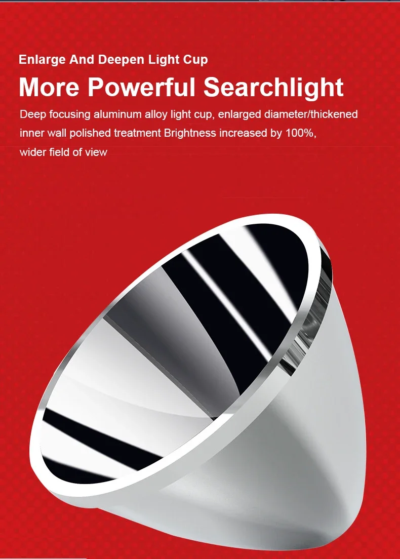 Deep-concentrating aluminum alloy light cup, enlarged diameter/thickened wall and polished inner wall, increase brightness by 100%, wider and wider angle lighting.