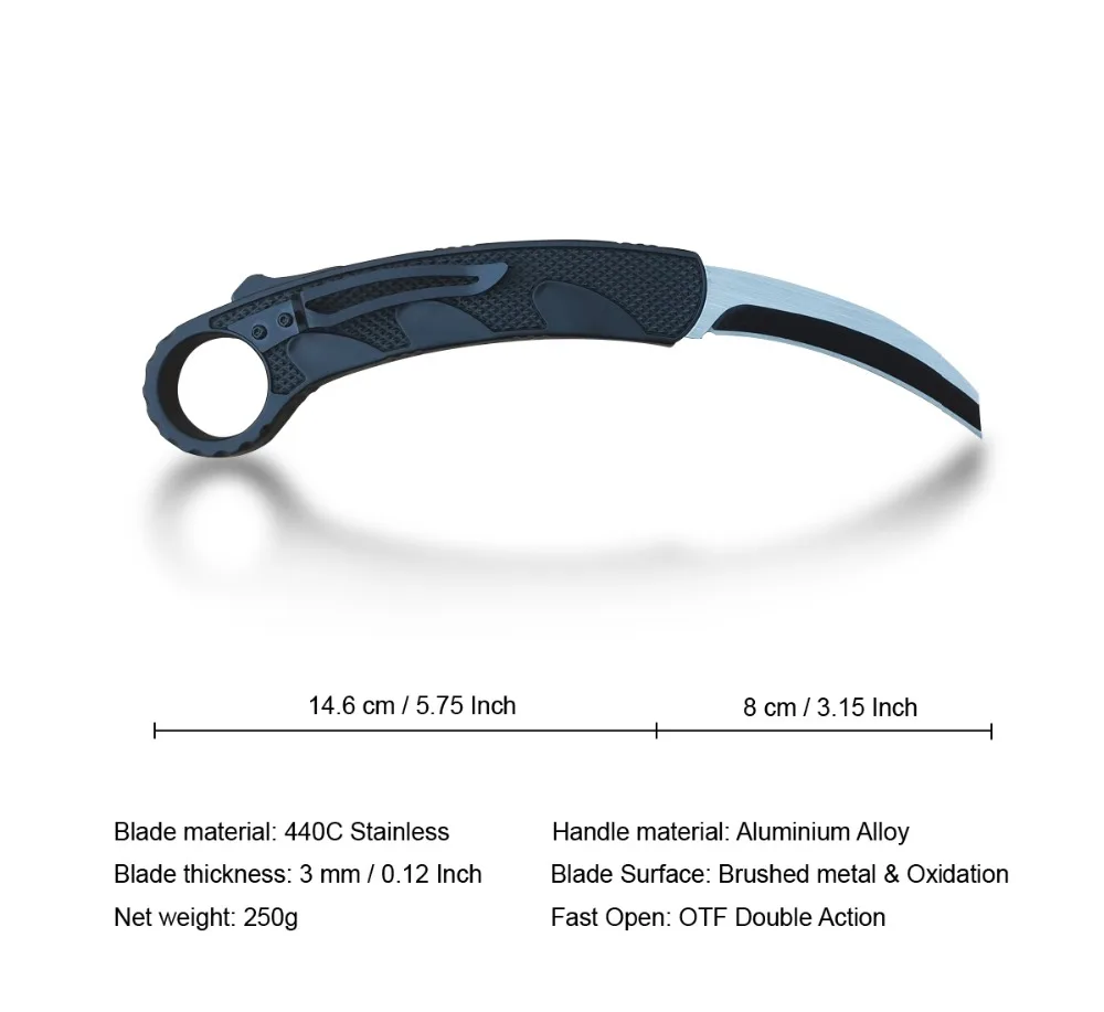 FEEL GOOD: The tactical folding knife weighs 250 grams, moderate weight and easy to operate. The smooth handle is oxidized by the surface of high-hard alloy aluminum, During use, it provides higher comfort and has a good anti-skid effect.
