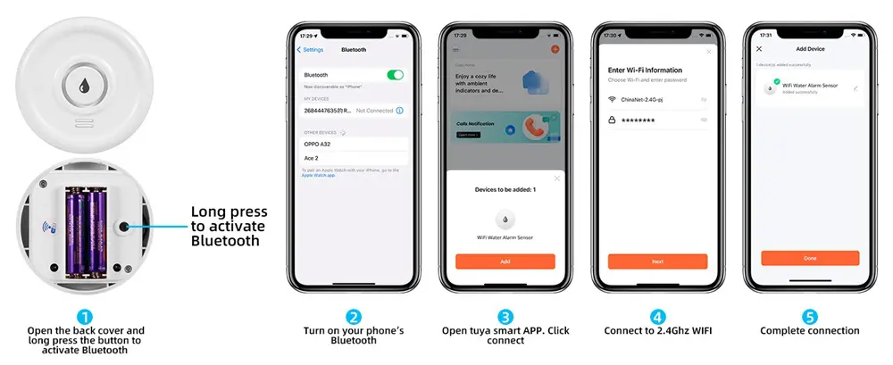 When the sensor detects a leak,it sends an alert to you phone and emits a 100-DB alarm.