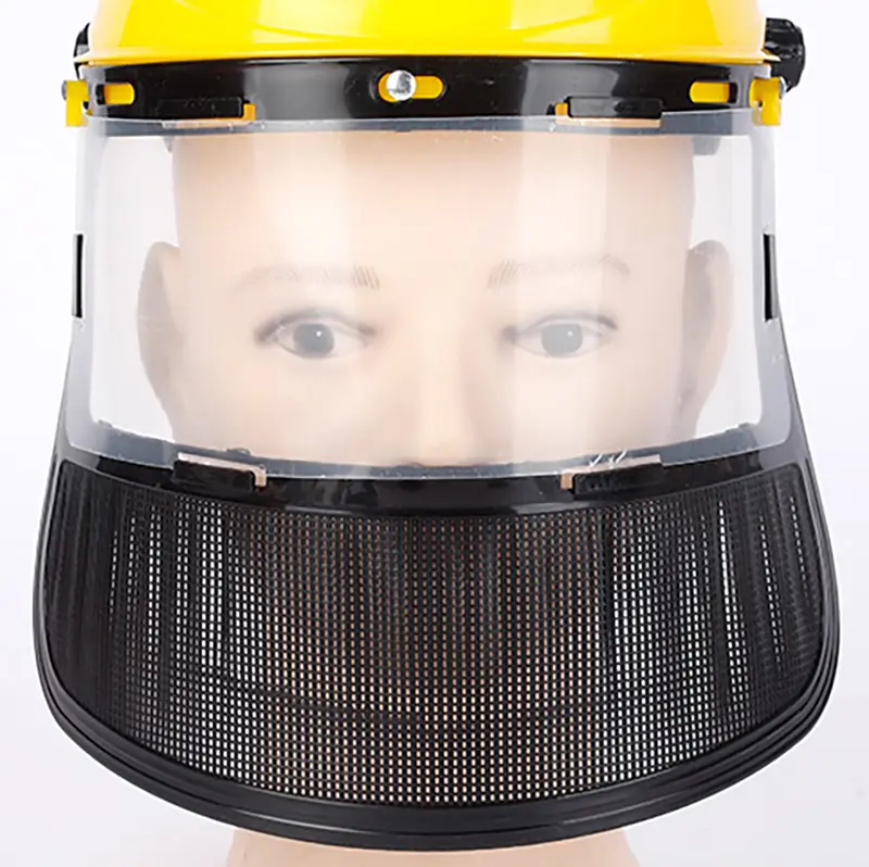The safety face shield with mesh visor can be applied to gardening, weeding, landscaping, wood cutting and other trimming work.